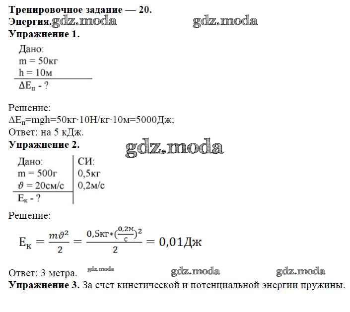 ОТВЕТ на задание № Задание №20. Энергия Дидактические материалы по Физике 7 класс Марон Вертикаль