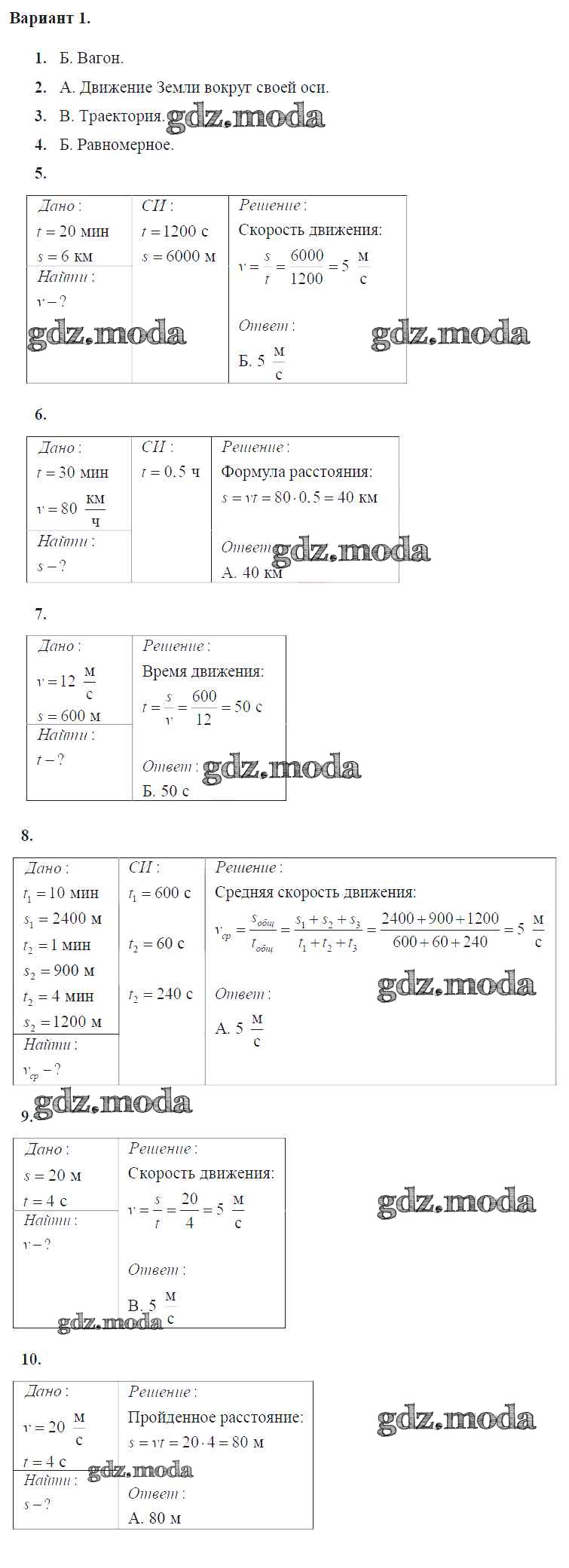 ОТВЕТ на задание № Вариант №1 Дидактические материалы по Физике 7 класс Марон Вертикаль