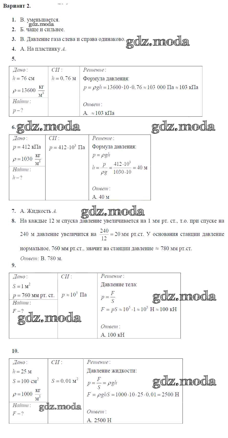 ОТВЕТ на задание № Вариант №2 Дидактические материалы по Физике 7 класс Марон Вертикаль