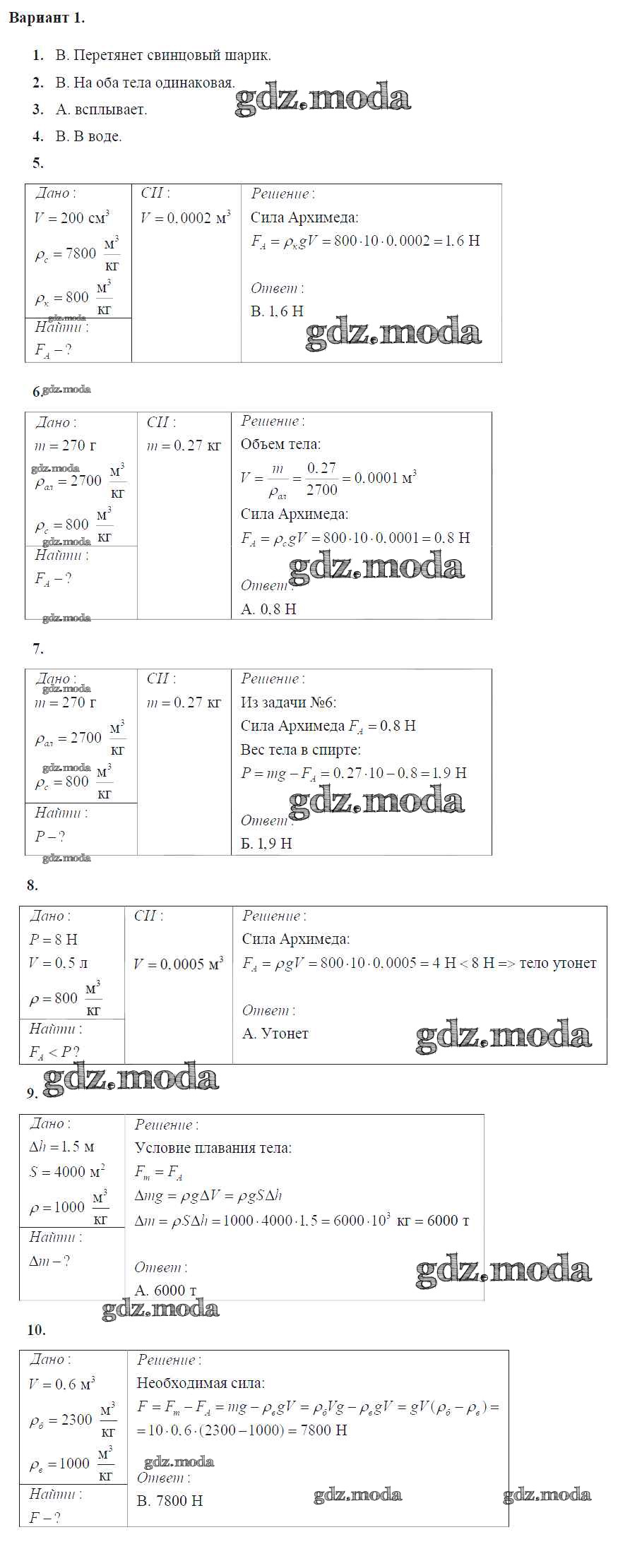 ОТВЕТ на задание № Вариант №1 Дидактические материалы по Физике 7 класс Марон Вертикаль
