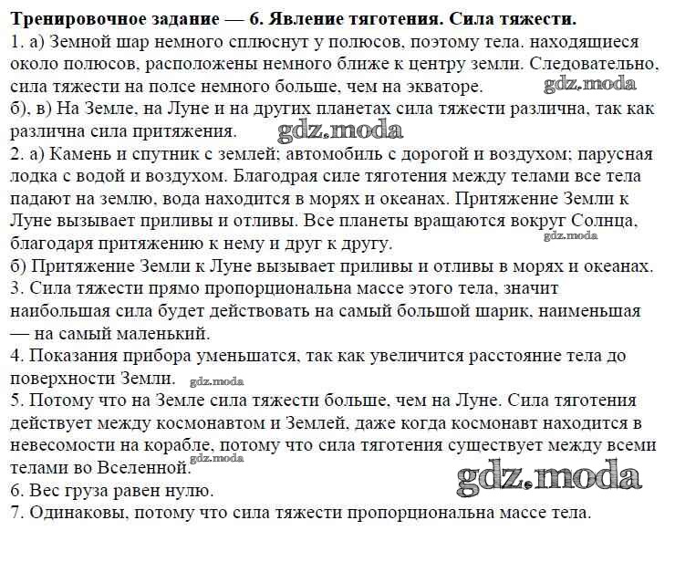 ОТВЕТ на задание № Задание №6. Явления тяготения. Сила тяжести Дидактические материалы по Физике 7 класс Марон Вертикаль