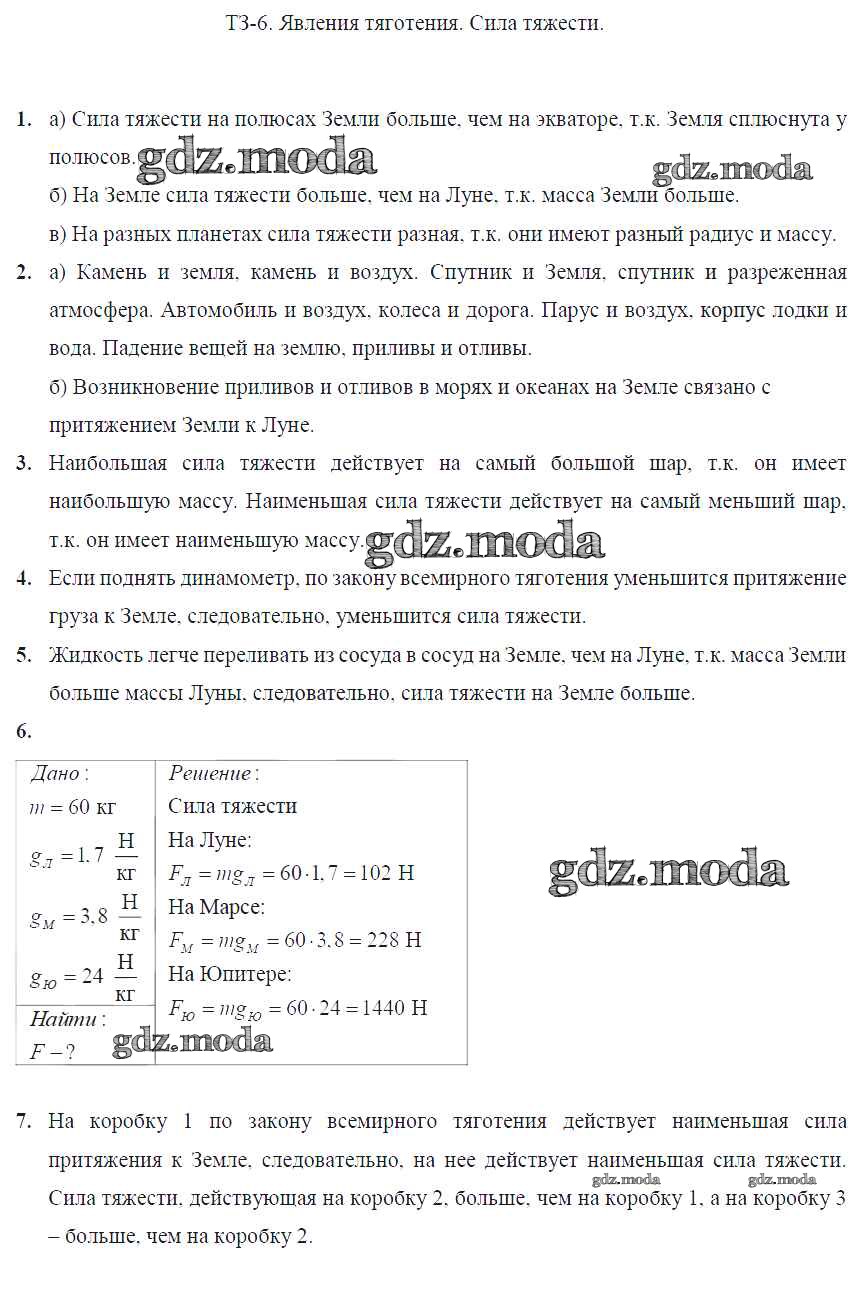 ГДЗ решение к заданию № Задание №6. Явления тяготения. Сила тяжести Физика 7 класс Дидактические материалы Марон А.Е. (к уч. Перышкина) Дрофа 2019 ФГОС бесплатно на гдз.мода!