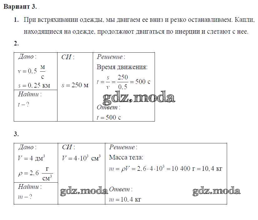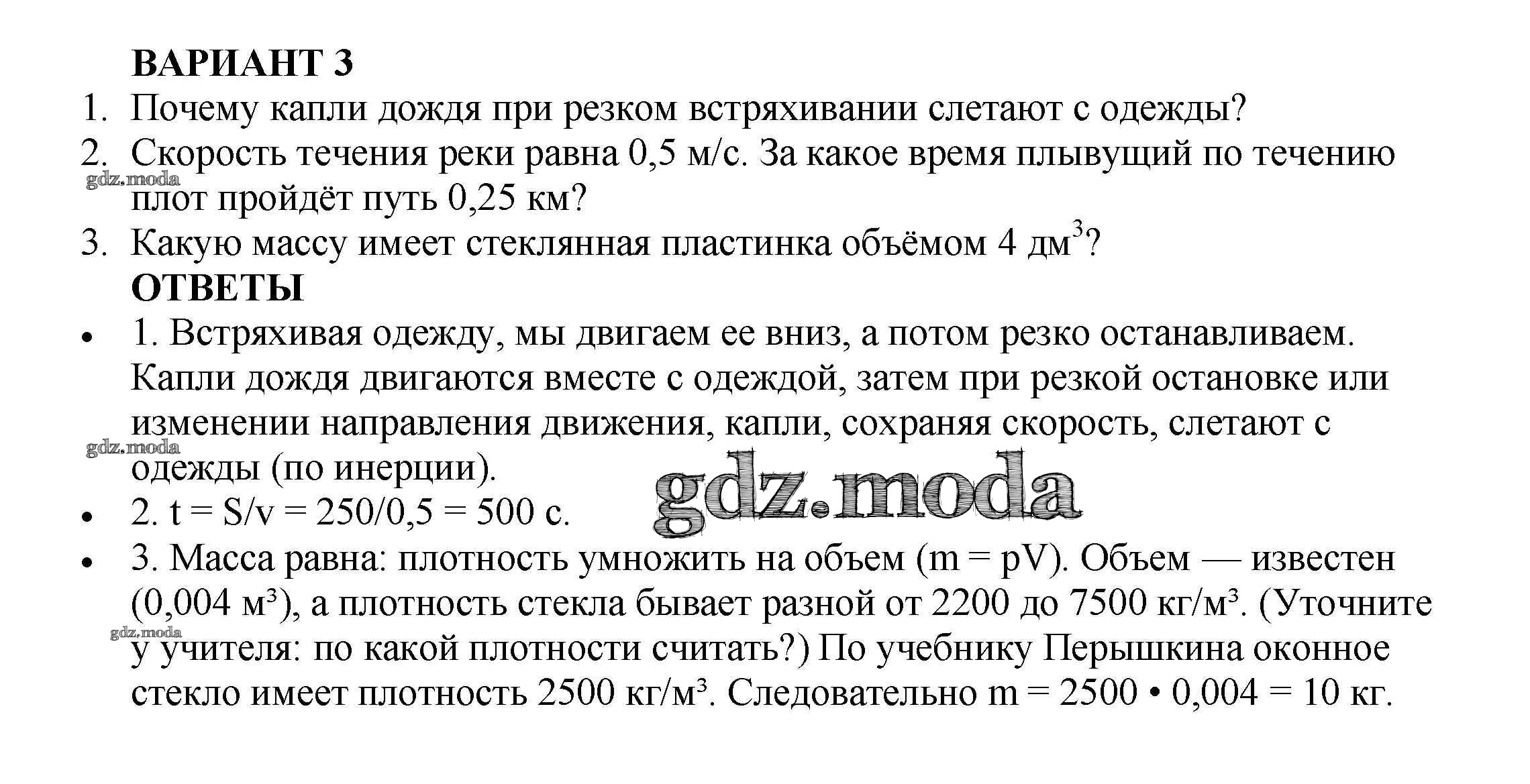 ОТВЕТ на задание № Вариант №3 Самостоятельные и контрольные работы по Физике 7 класс Марон Вертикаль
