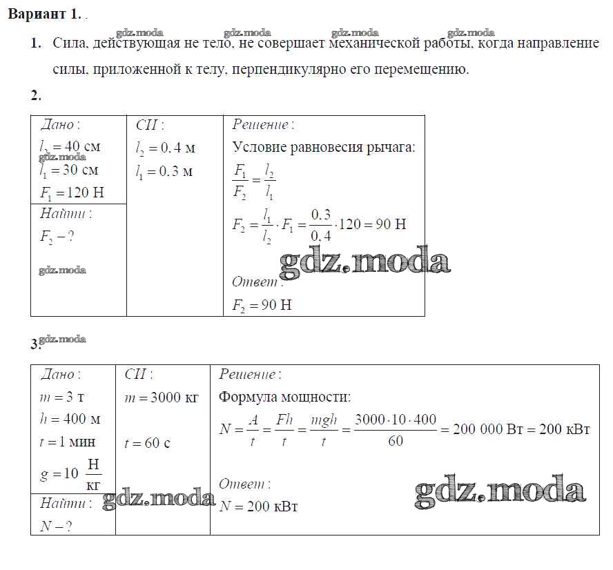 ОТВЕТ на задание № Вариант №1 Самостоятельные и контрольные работы по Физике 7 класс Марон Вертикаль