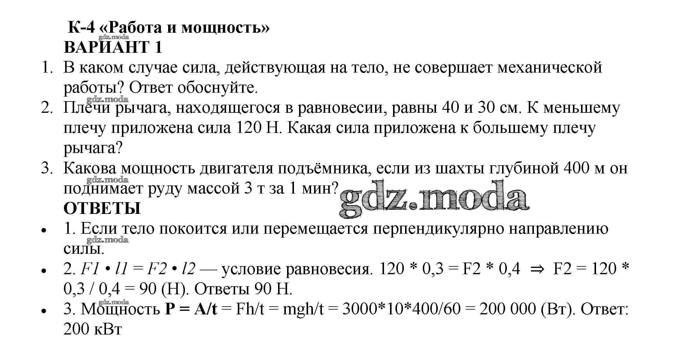 контрольная работа / кр №-4. работа и мощность. энергия / вариант №1