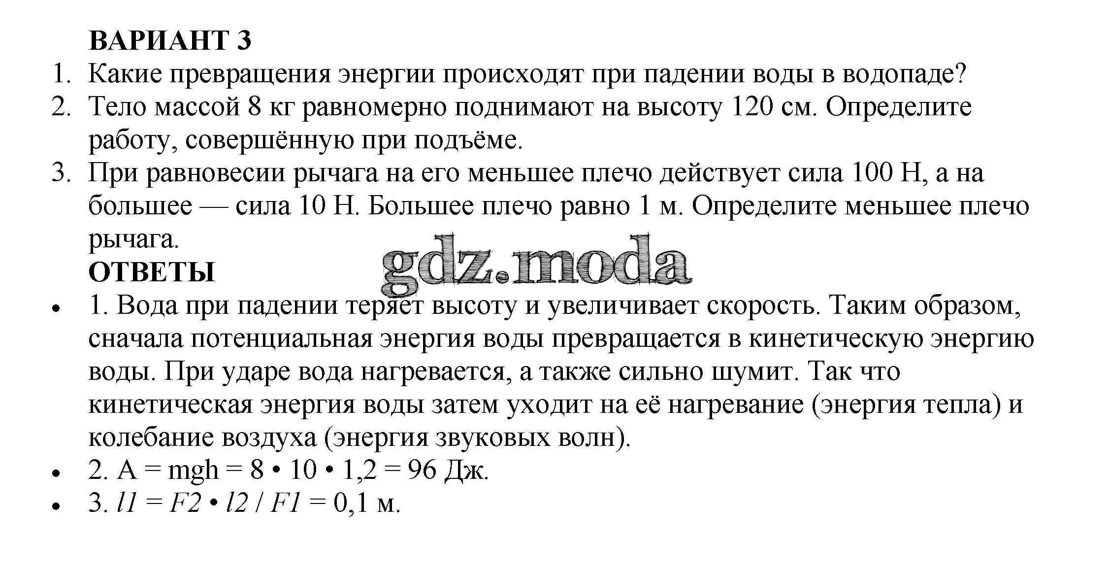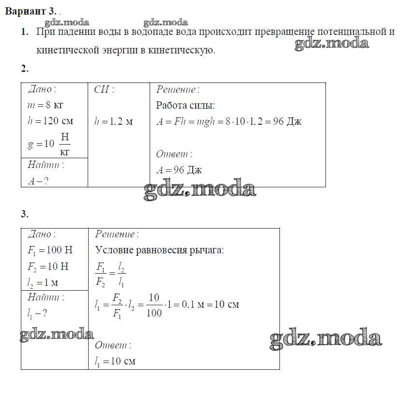ОТВЕТ на задание № Вариант №3 Самостоятельные и контрольные работы по Физике 7 класс Марон Вертикаль