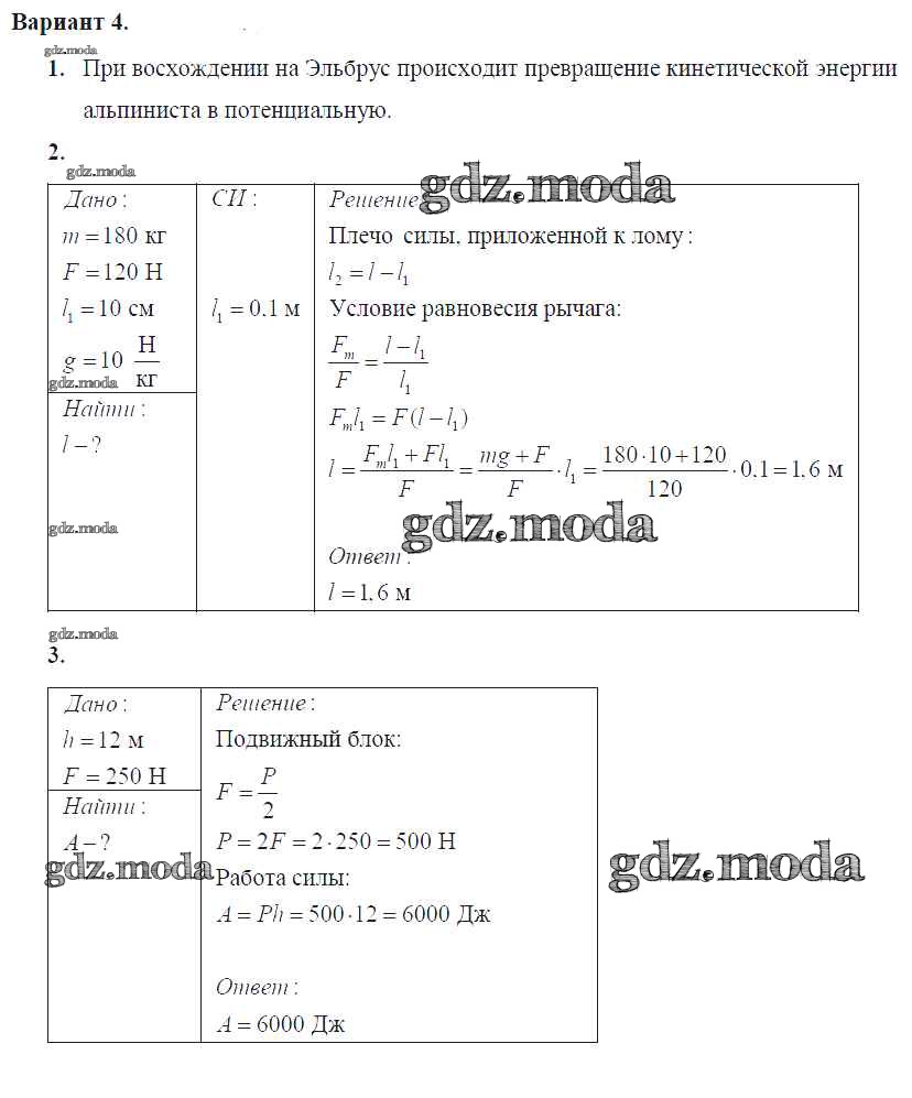 контрольная работа / кр №-4. работа и мощность. энергия / вариант №4