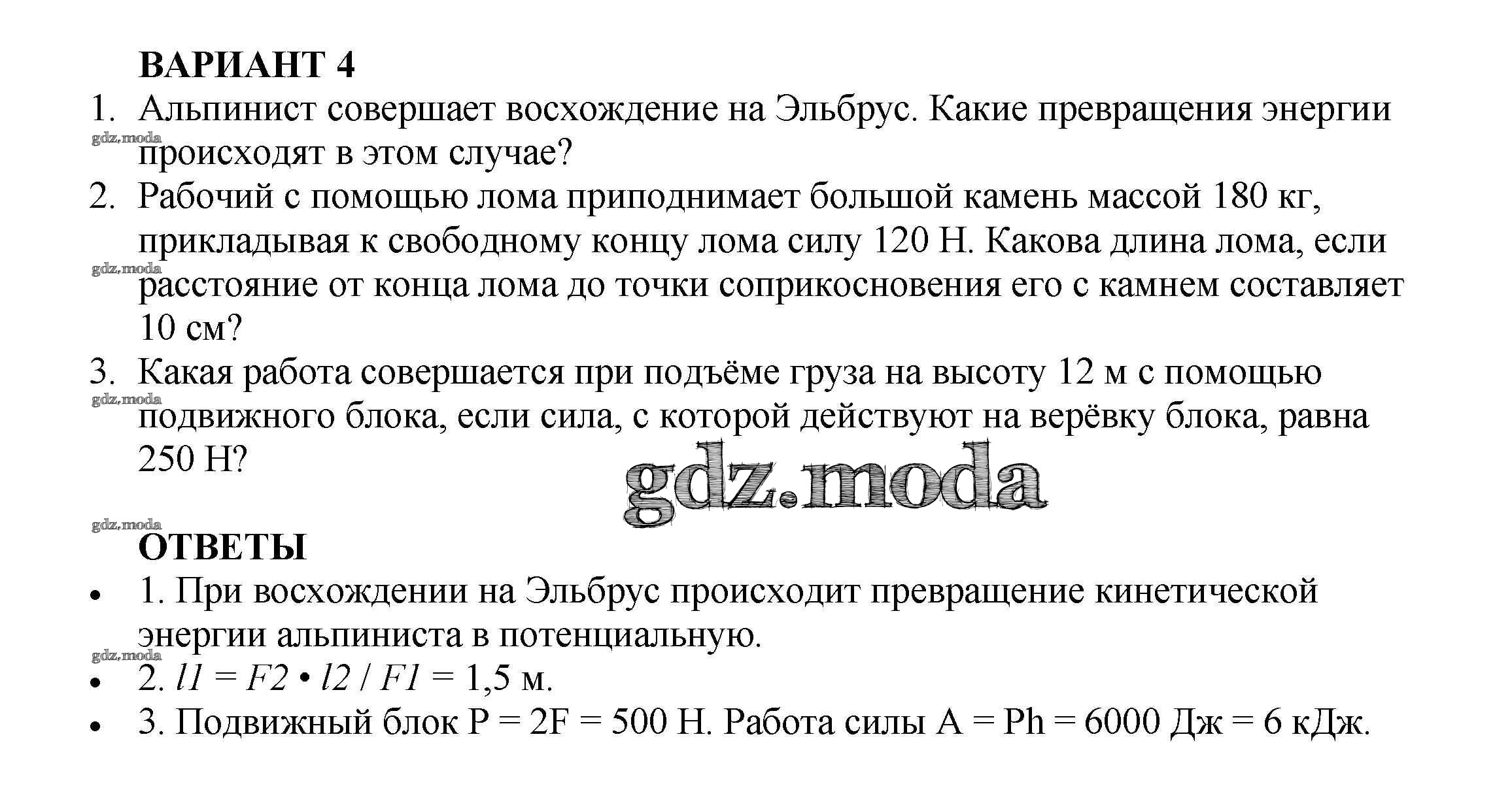 ОТВЕТ на задание № Вариант №4 Самостоятельные и контрольные работы по Физике 7 класс Марон Вертикаль