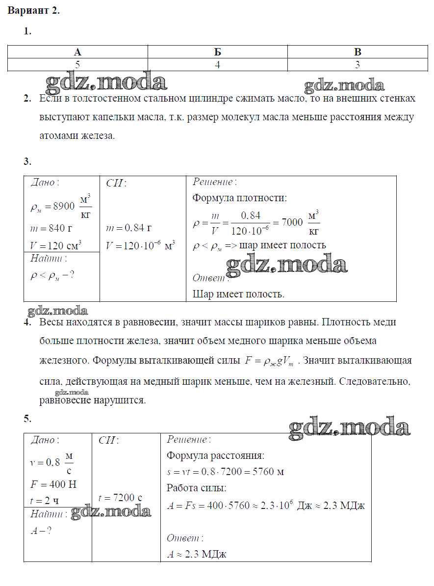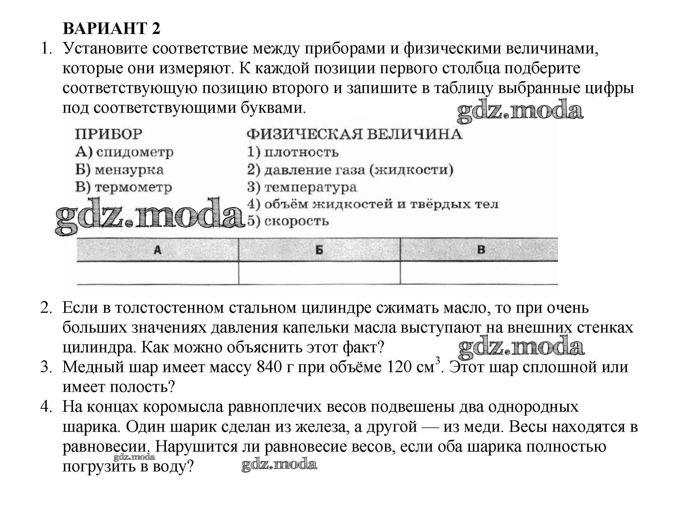 ОТВЕТ на задание № Вариант №2 Самостоятельные и контрольные работы по Физике 7 класс Марон Вертикаль