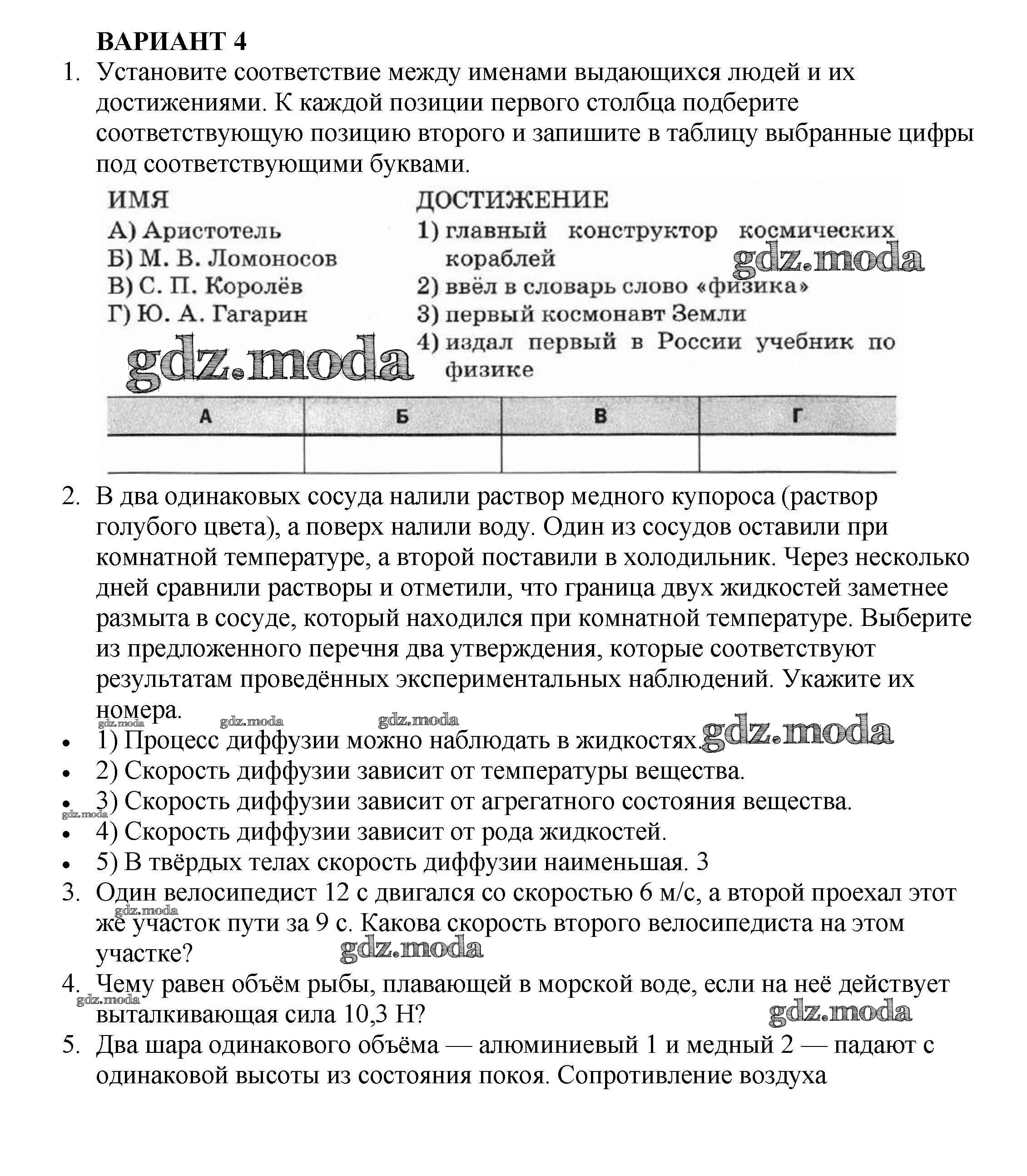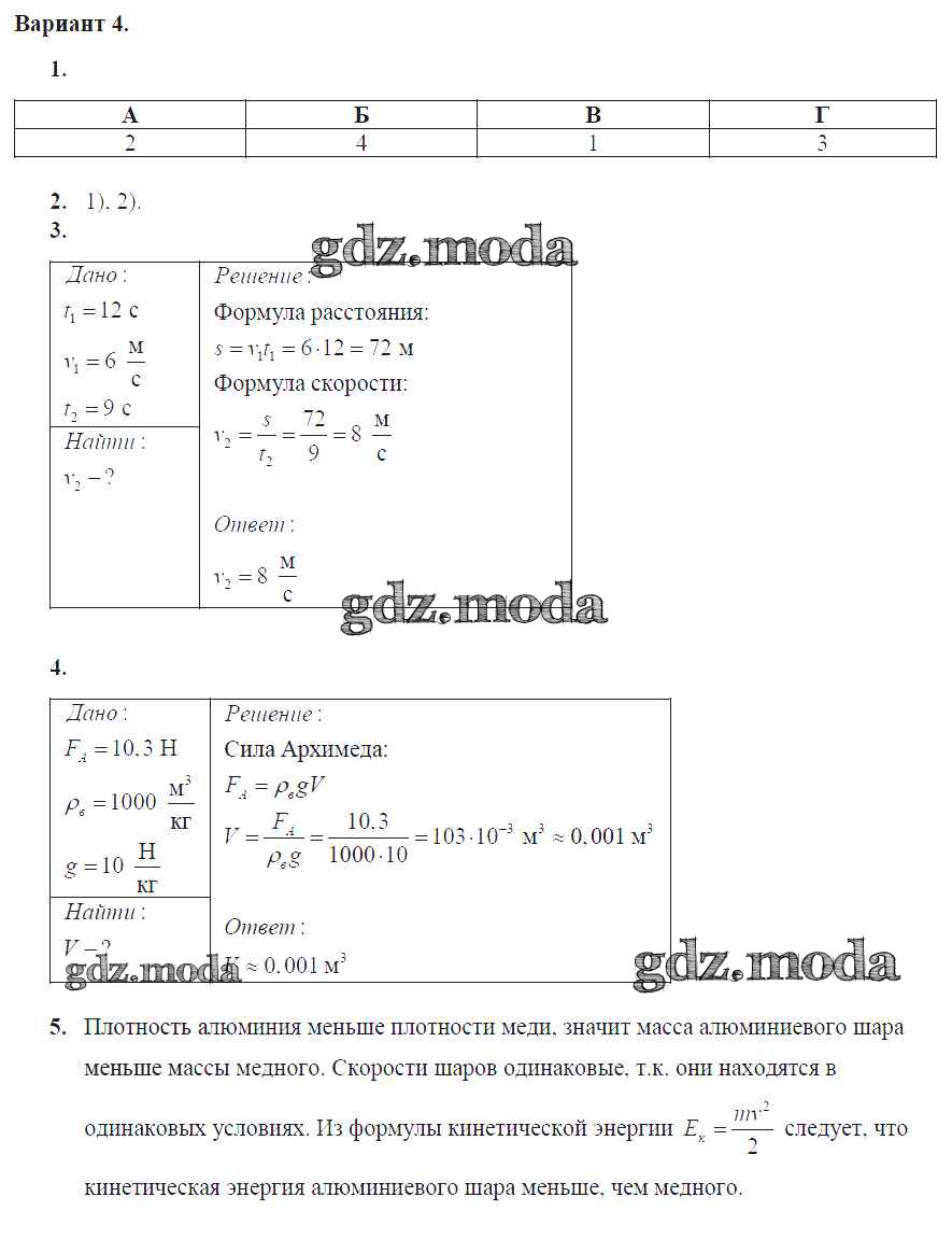 ОТВЕТ на задание № Вариант №4 Самостоятельные и контрольные работы по Физике 7 класс Марон Вертикаль