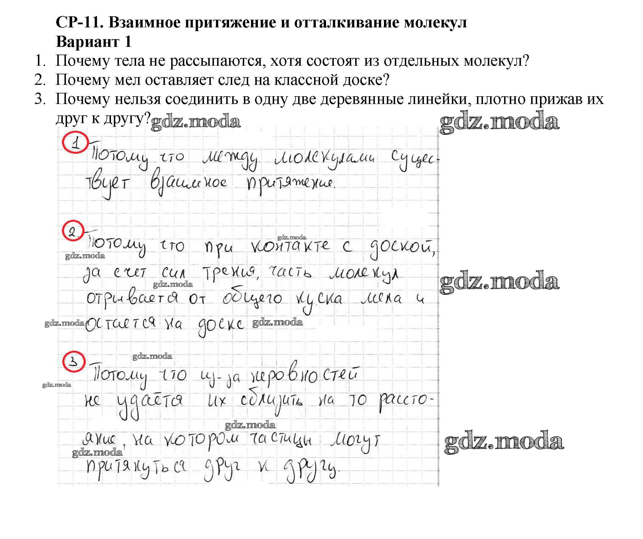 самостоятельная работа / ср-№11. взаимное притяжение и отталкивание молекул / вариант №1
