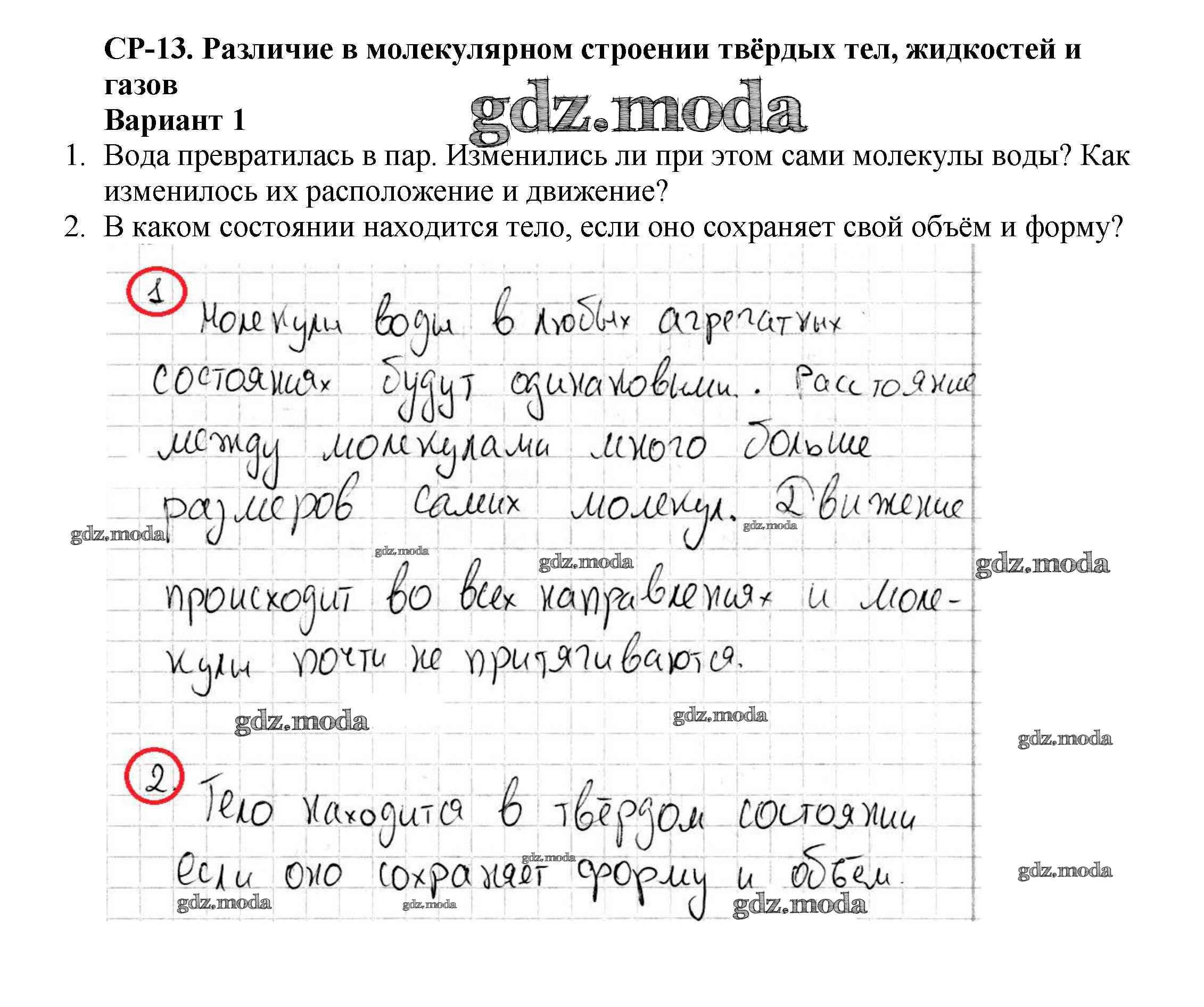 самостоятельная работа / ср-№13. различия в молекулярном строении твердых тел, жидкостей и газов / вариант №1