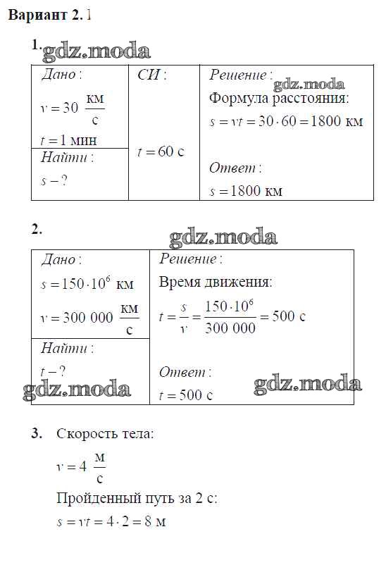 ОТВЕТ на задание № Вариант №2 Самостоятельные и контрольные работы по Физике 7 класс Марон Вертикаль
