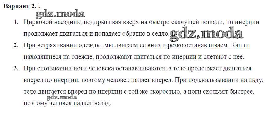 ОТВЕТ на задание № Вариант №2 Самостоятельные и контрольные работы по Физике 7 класс Марон Вертикаль