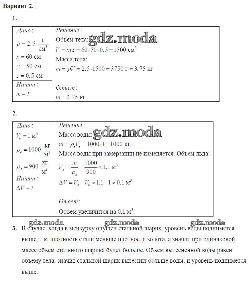 самостоятельная работа / ср-№23. расчет массы и объема тела по его плотности / вариант №2