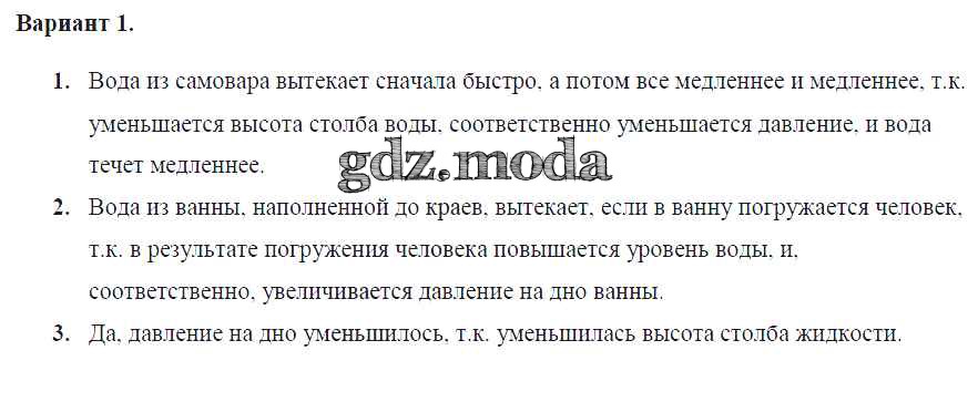 ОТВЕТ на задание № Вариант №1 Самостоятельные и контрольные работы по Физике 7 класс Марон Вертикаль