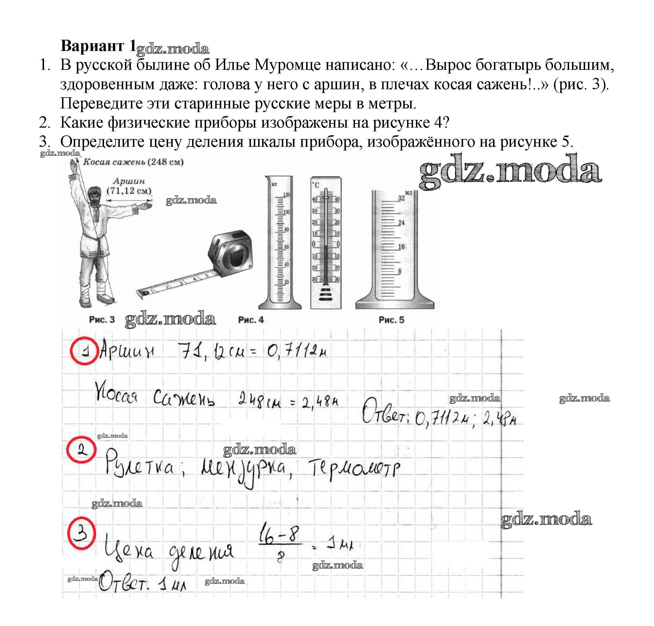 ОТВЕТ на задание № Вариант №1 Самостоятельные и контрольные работы по Физике 7 класс Марон Вертикаль