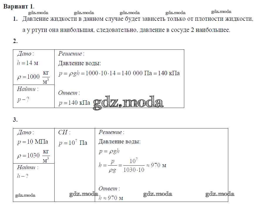 ОТВЕТ на задание № Вариант №1 Самостоятельные и контрольные работы по Физике 7 класс Марон Вертикаль