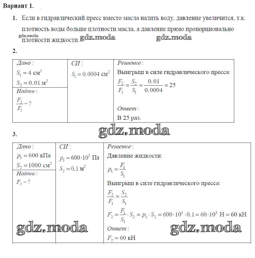 ОТВЕТ на задание № Вариант №1 Самостоятельные и контрольные работы по Физике 7 класс Марон Вертикаль