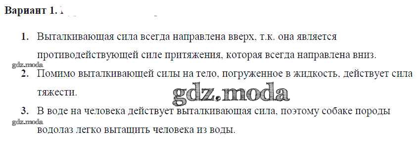 самостоятельная работа / ср-№50. действие жидкости и газа на погруженное в них тело / вариант №1