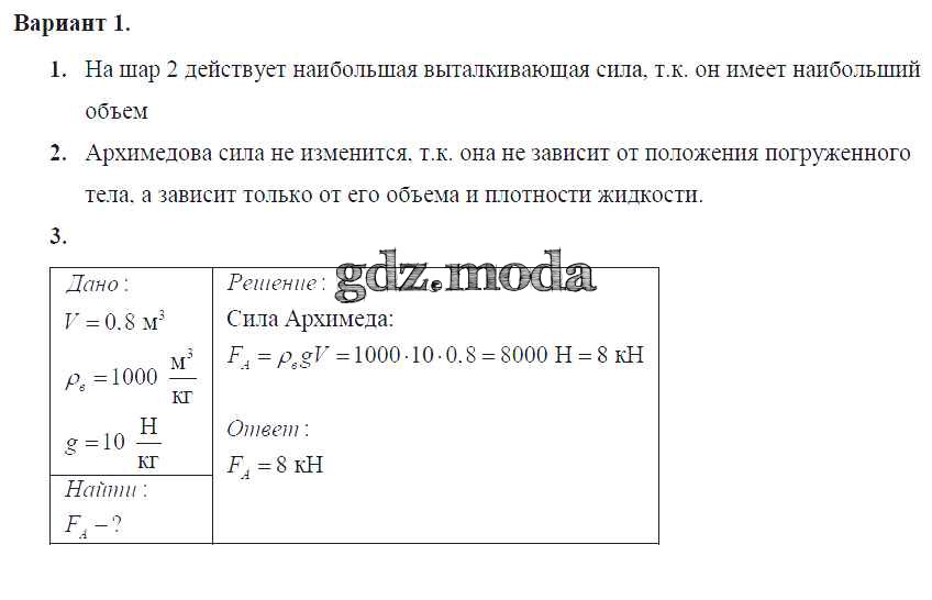 самостоятельная работа / ср-№51. Архимедова сила / вариант №1