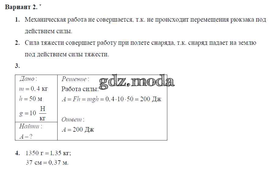 самостоятельная работа / ср-№55. механическая работа. единицы работы / вариант №2
