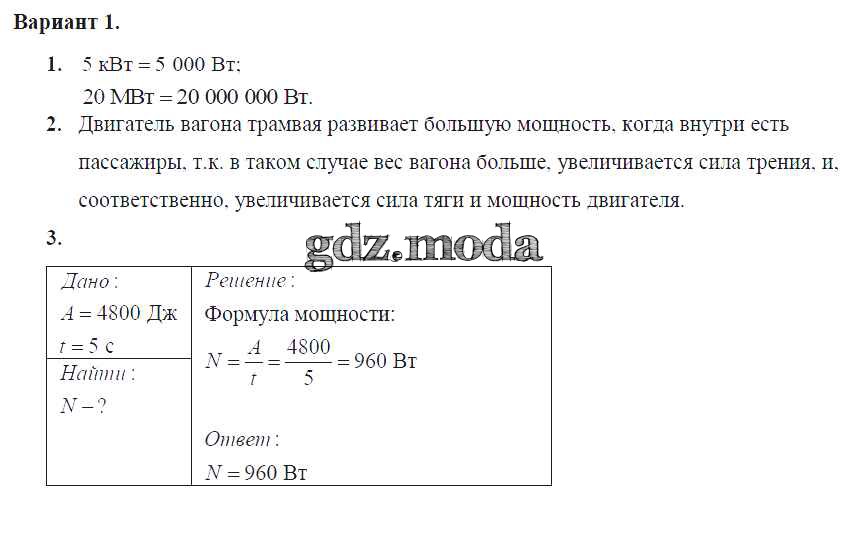 самостоятельная работа / ср-№56. мощность. единицы мощности / вариант №1