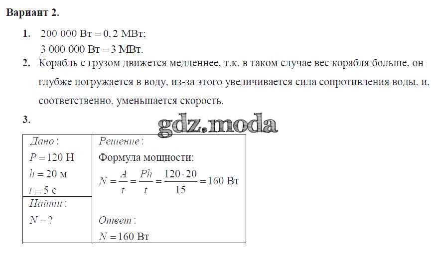 самостоятельная работа / ср-№56. мощность. единицы мощности / вариант №2