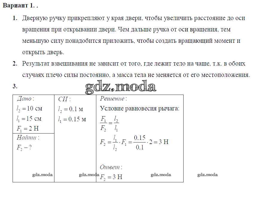 самостоятельная работа / ср-№58. рычаги. равновесие сил на рычаге / вариант №1