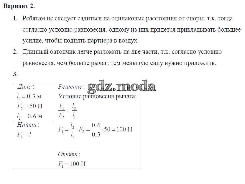 самостоятельная работа / ср-№58. рычаги. равновесие сил на рычаге / вариант №2