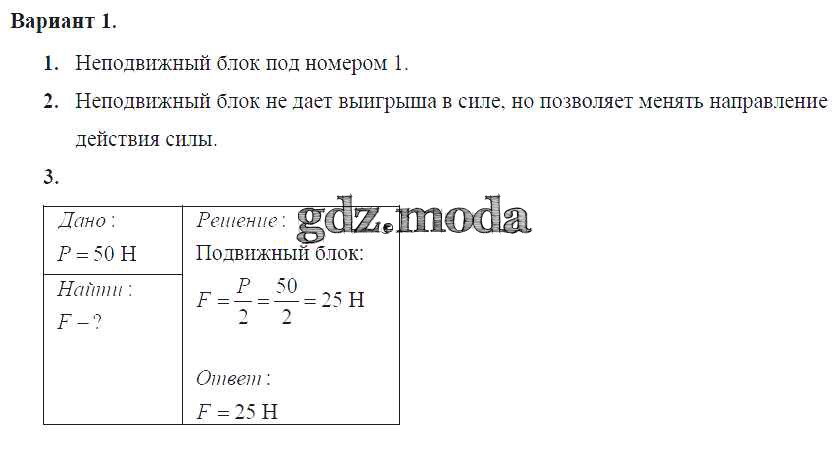 самостоятельная работа / ср-№61. применение правила равновесия рычага к блоку / вариант №1