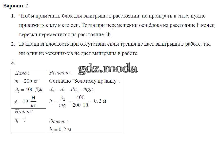 самостоятельная работа / ср-№62. равенство работ при использовании простых механизмов / вариант №2
