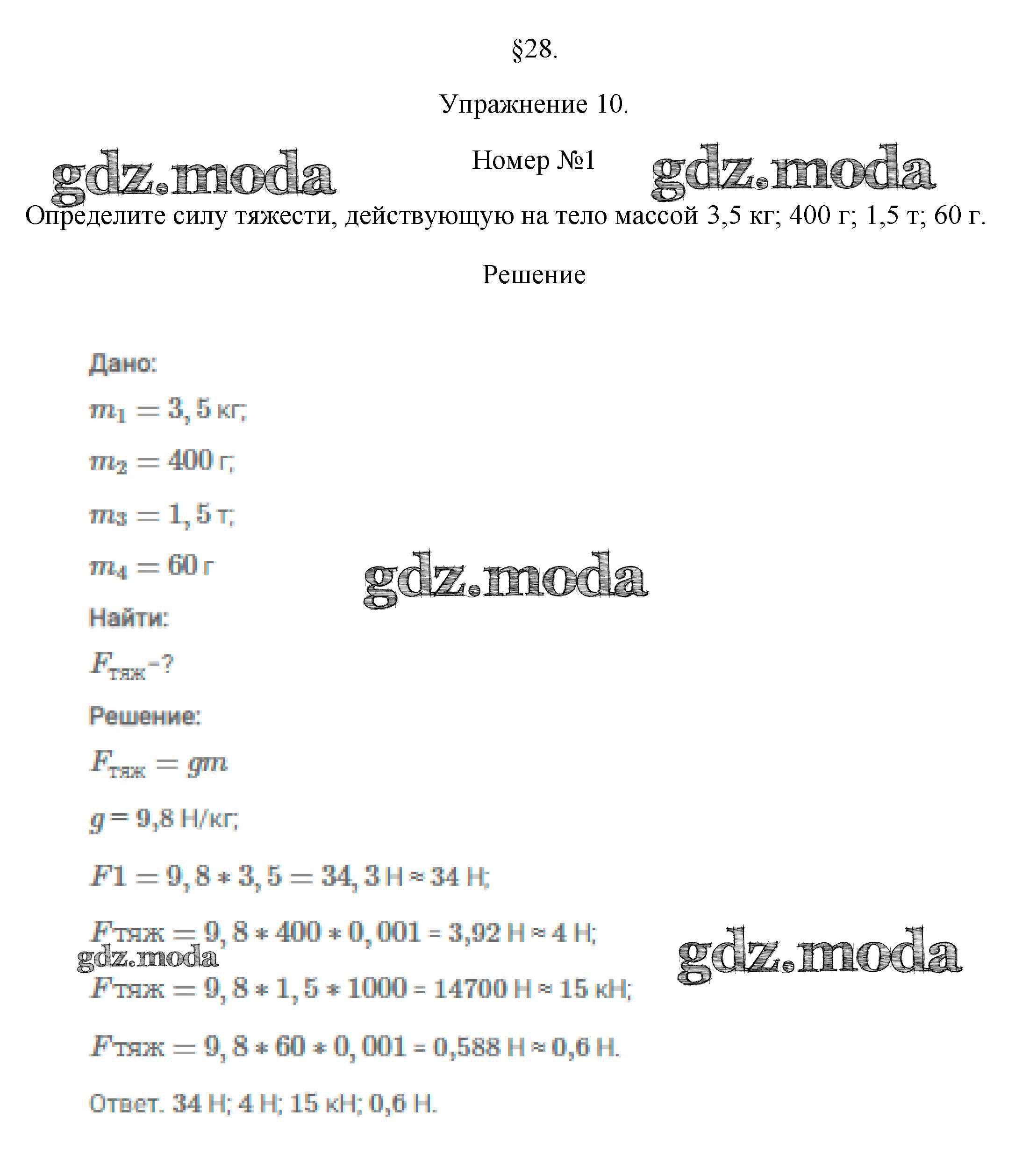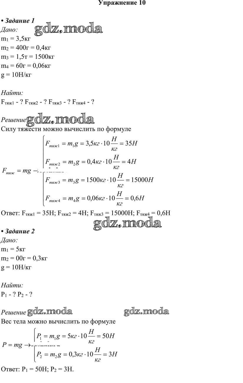 ОТВЕТ на задание № 10 Учебник по Физике 7 класс Перышкин Вертикаль