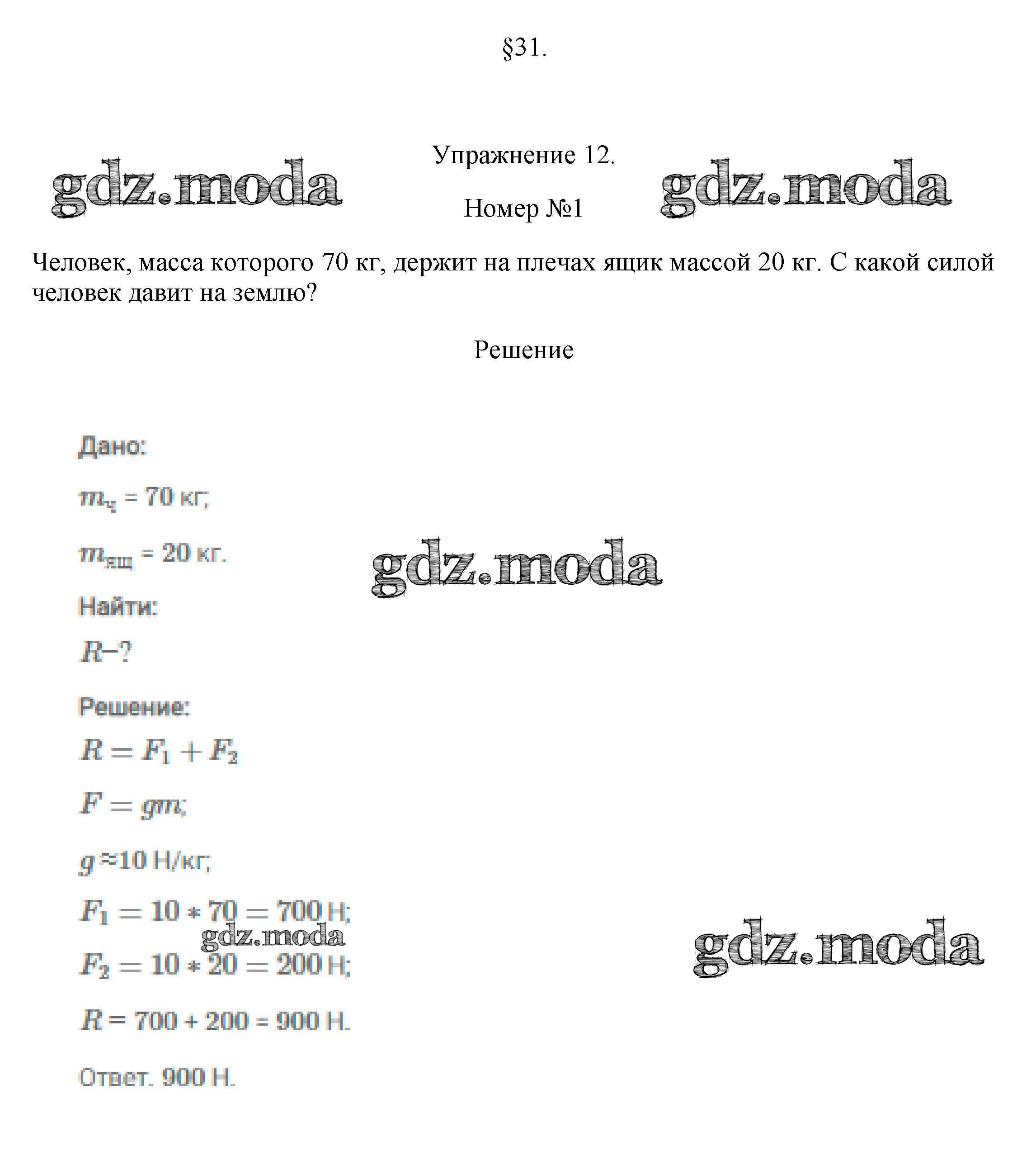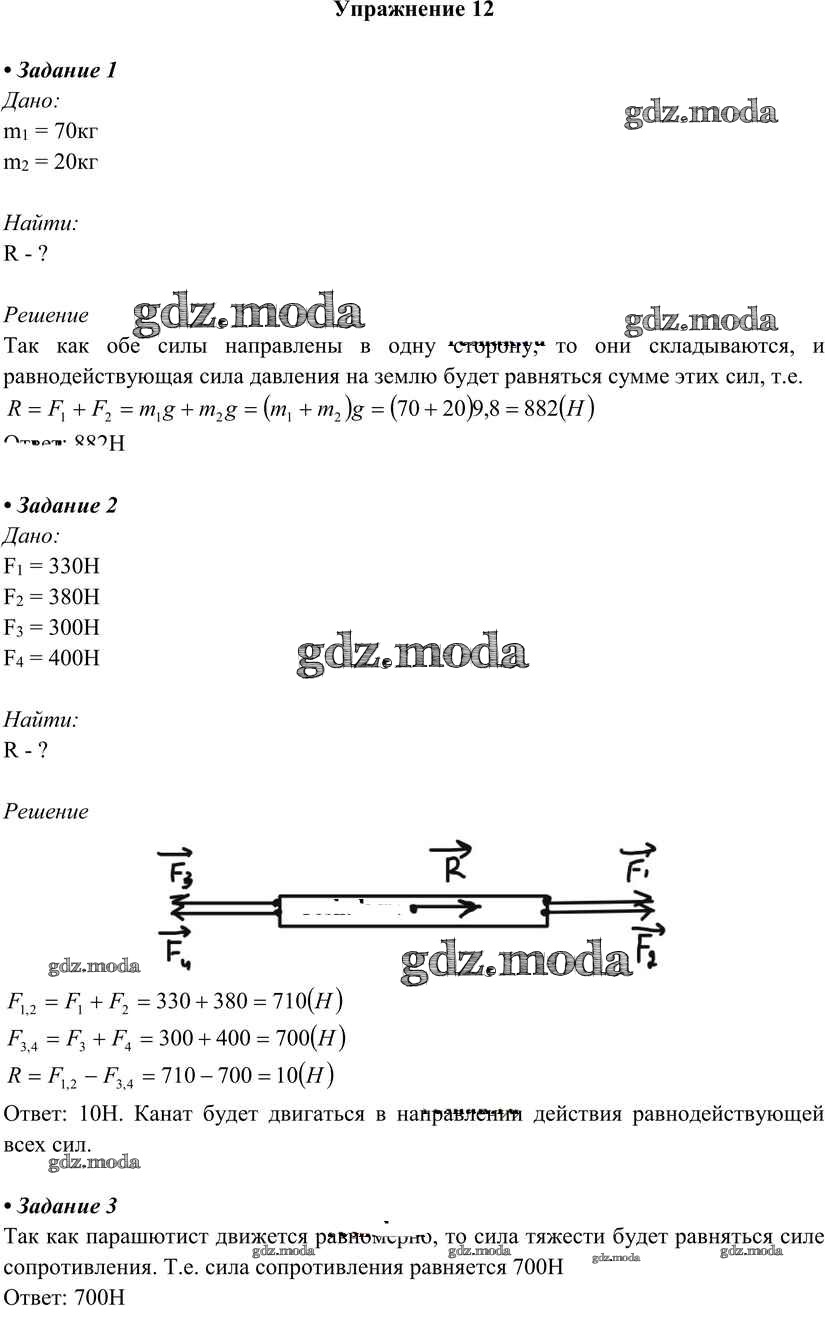 ОТВЕТ на задание № 12 Учебник по Физике 7 класс Перышкин Вертикаль