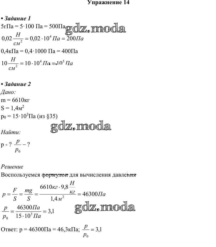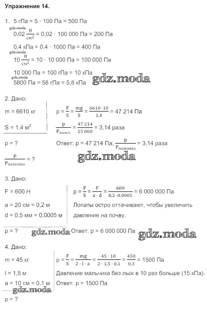 ОТВЕТ на задание № 14 Учебник по Физике 7 класс Перышкин Вертикаль