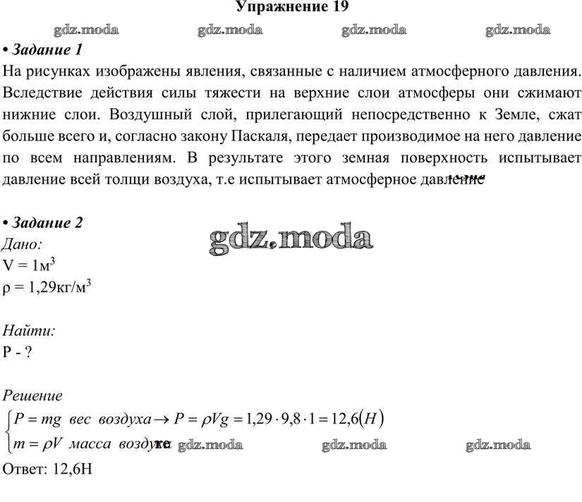 ОТВЕТ на задание № 19 Учебник по Физике 7 класс Перышкин Вертикаль