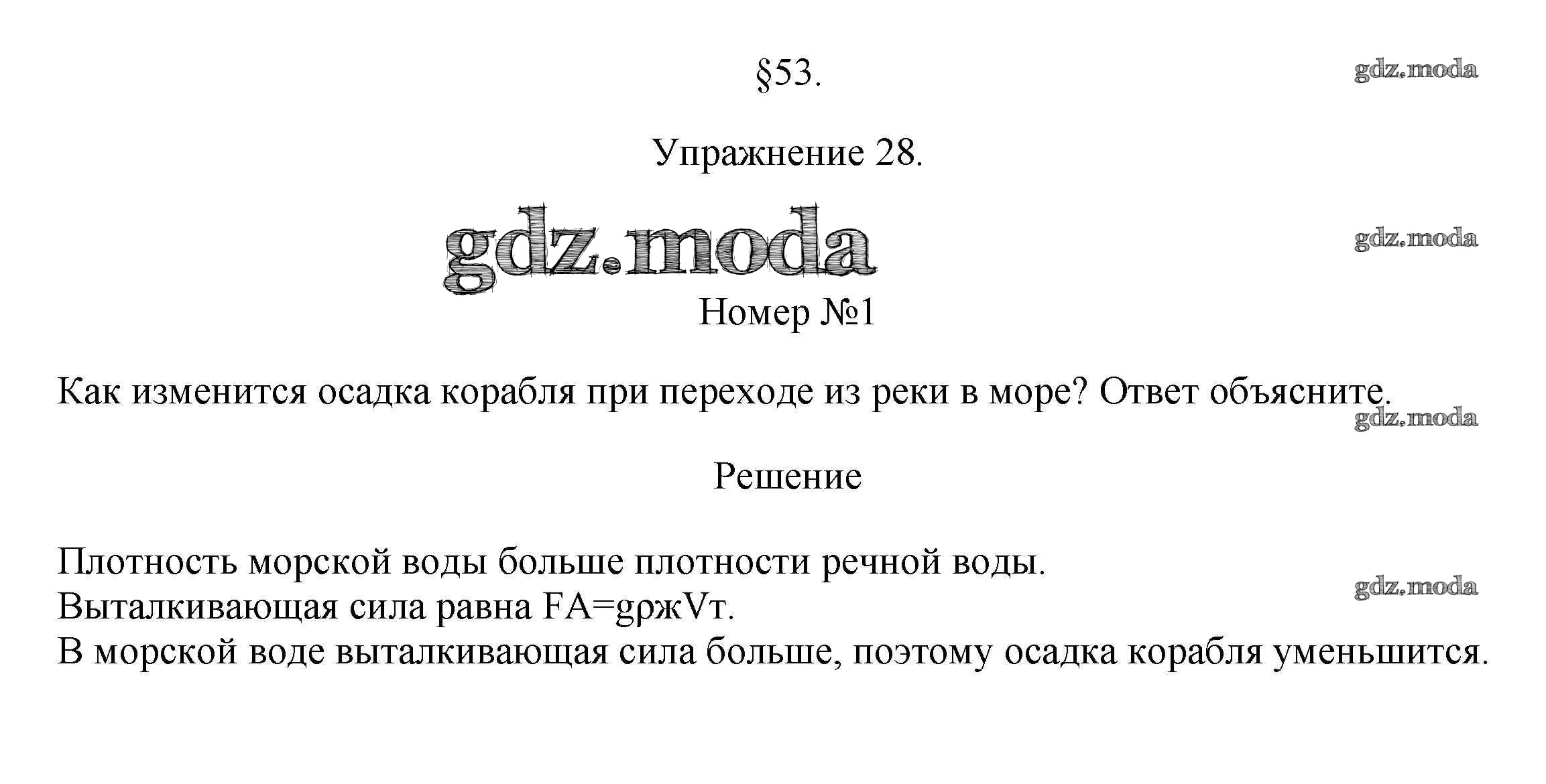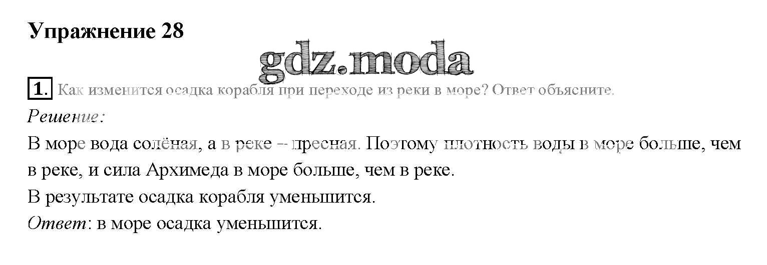 ОТВЕТ на задание № 28 Учебник по Физике 7 класс Перышкин Вертикаль