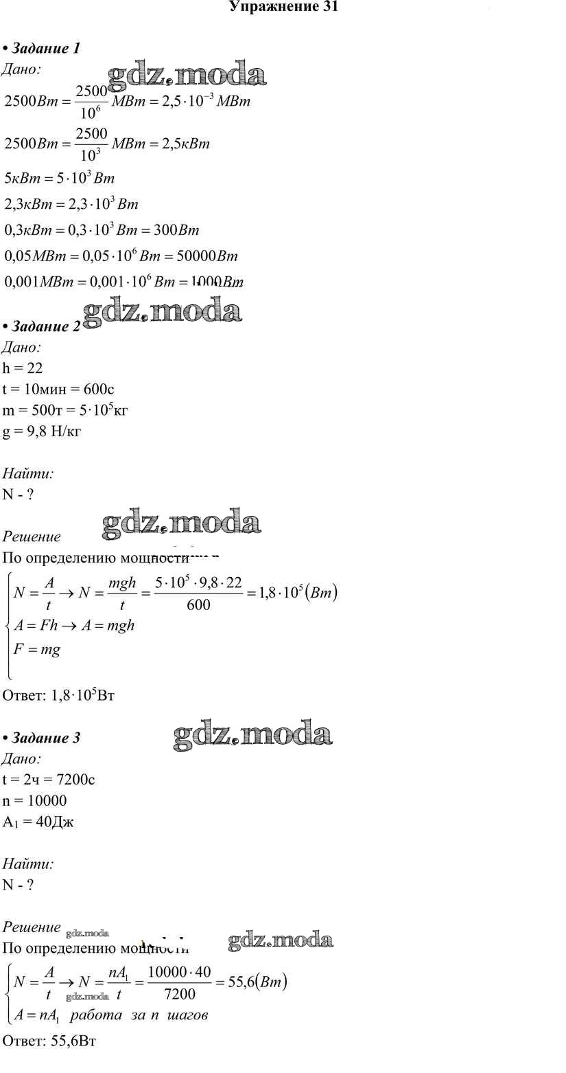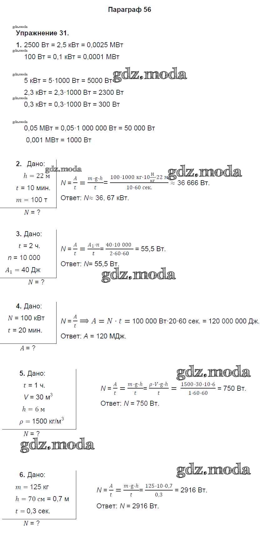 ОТВЕТ на задание № 31 Учебник по Физике 7 класс Перышкин Вертикаль