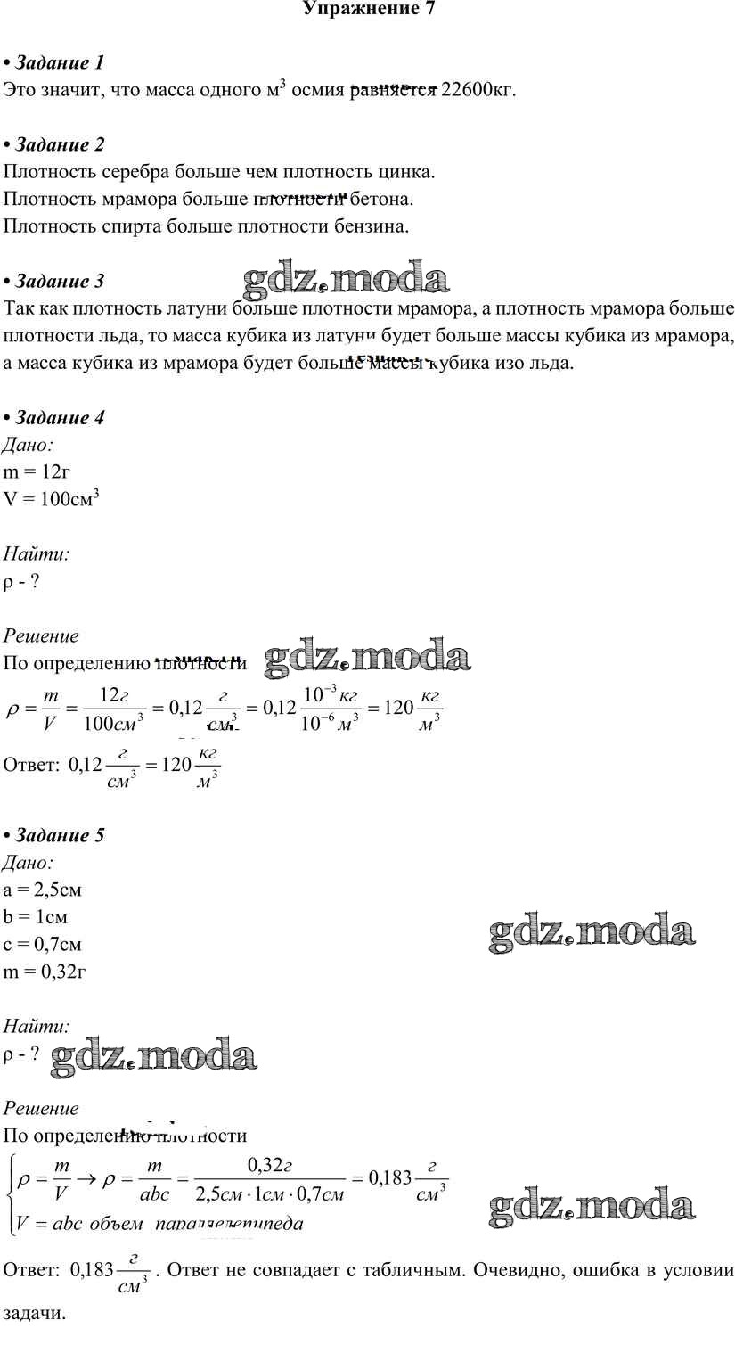 ОТВЕТ на задание № 7 Учебник по Физике 7 класс Перышкин Вертикаль