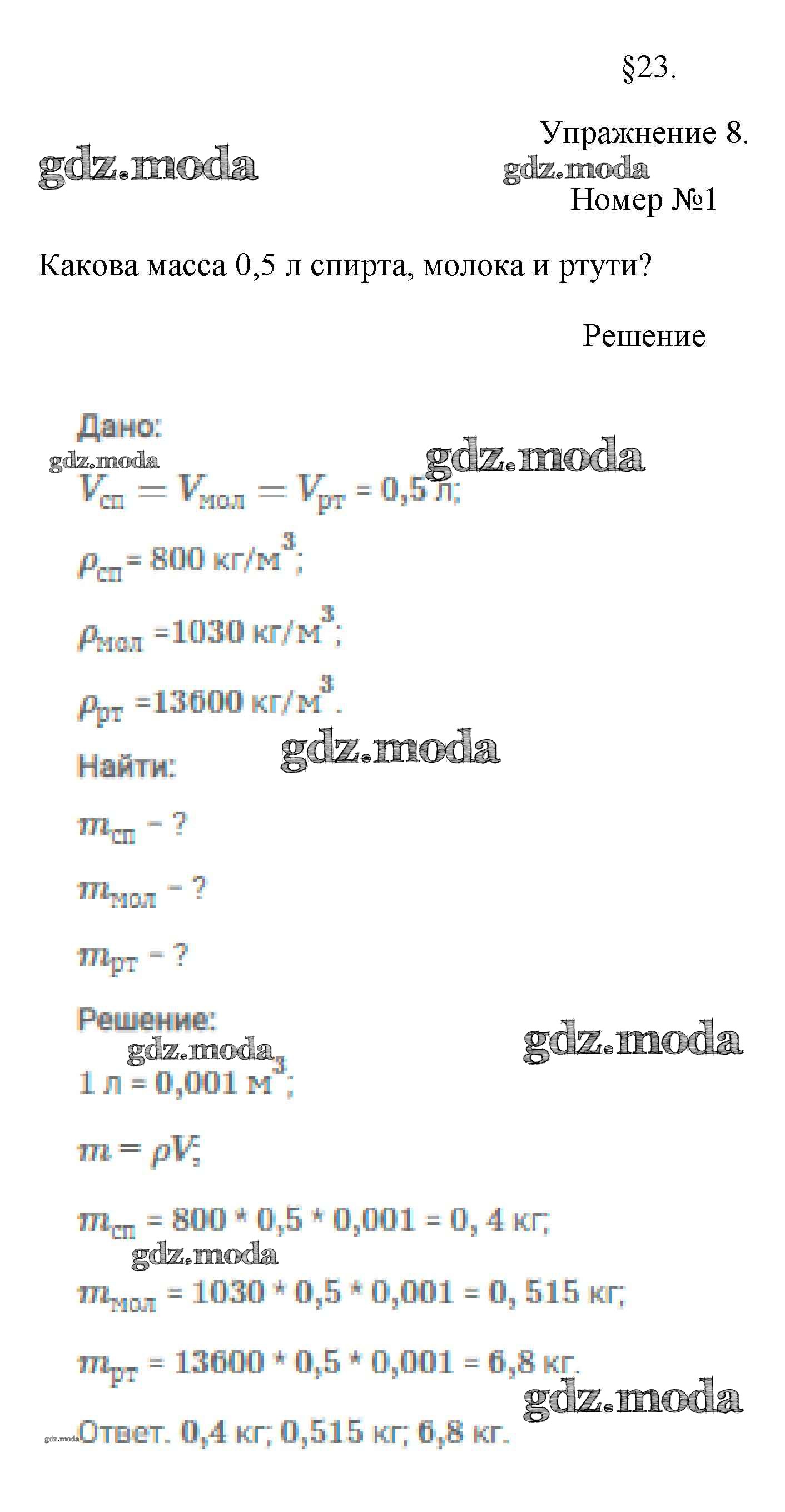 ОТВЕТ на задание № 8 Учебник по Физике 7 класс Перышкин Вертикаль