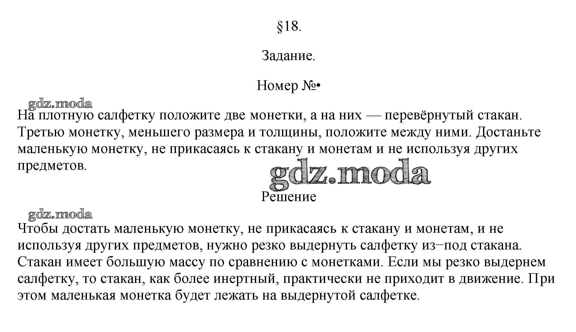 ОТВЕТ на задание № §18 Учебник по Физике 7 класс Перышкин Вертикаль