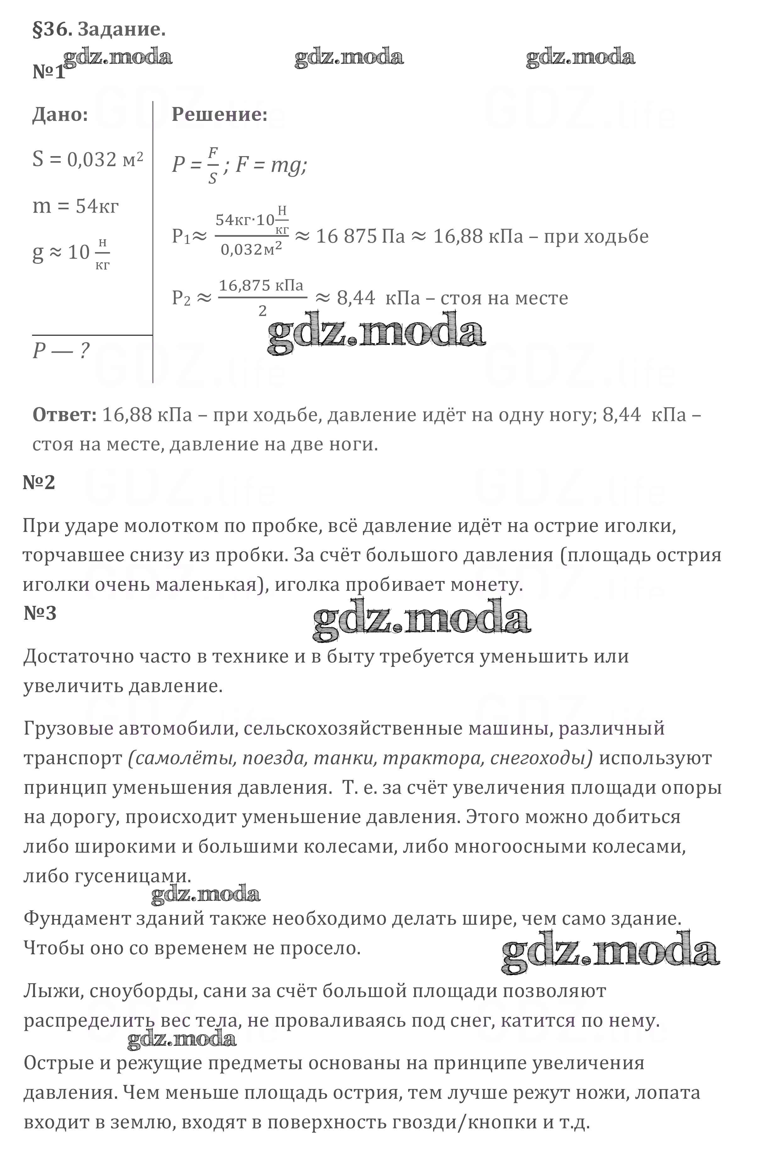 ОТВЕТ на задание № §36 Учебник по Физике 7 класс Перышкин Вертикаль