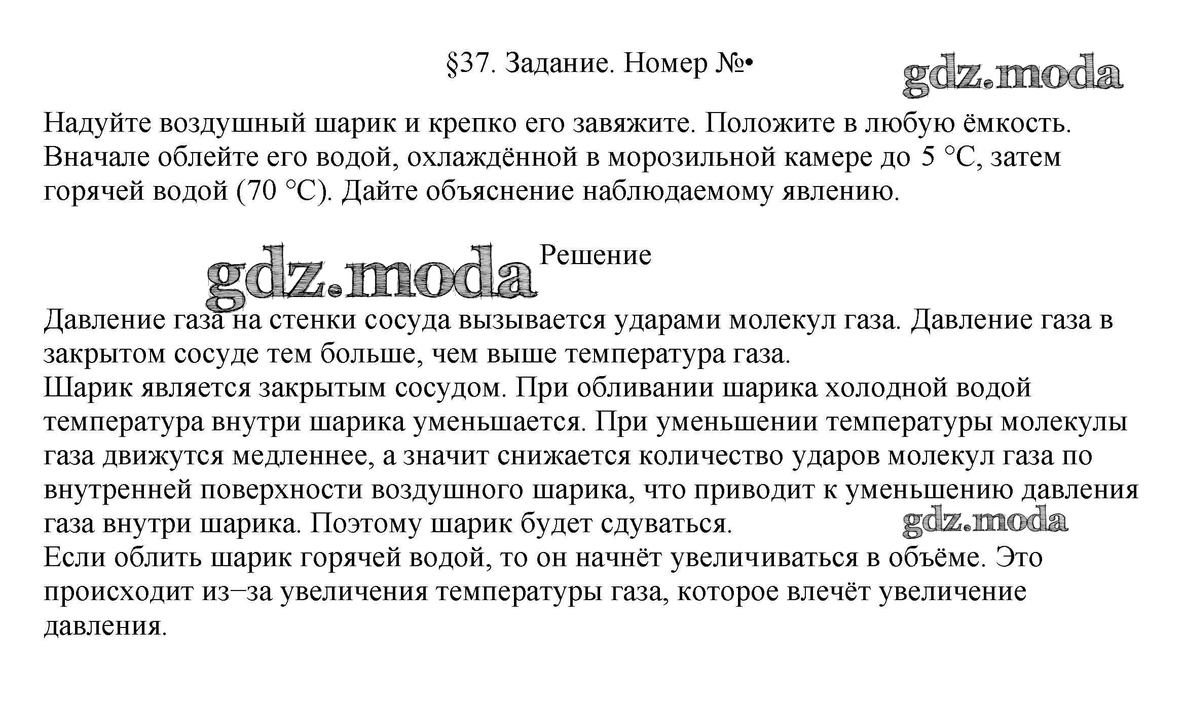 ОТВЕТ на задание № §37 Учебник по Физике 7 класс Перышкин Вертикаль