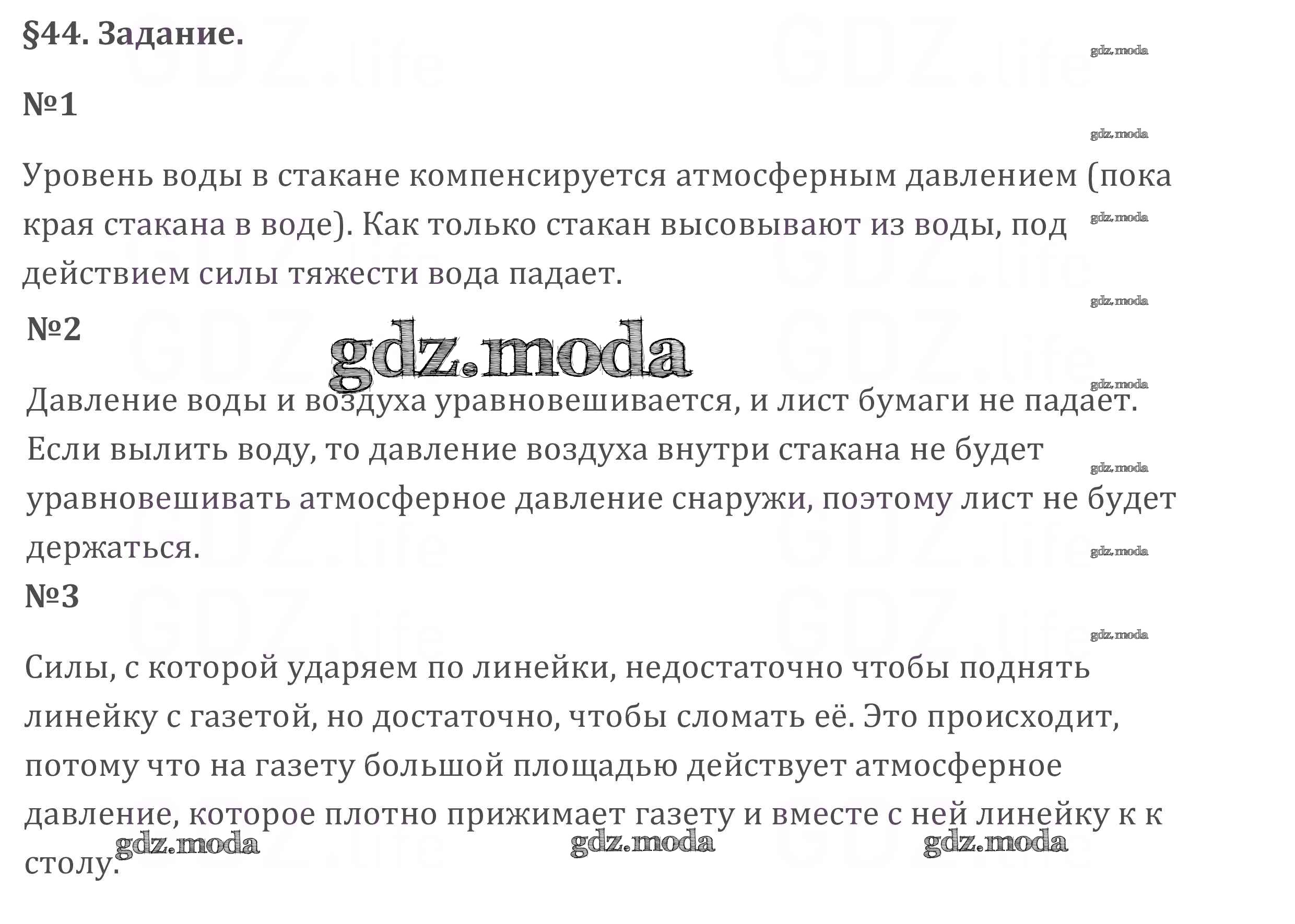 ОТВЕТ на задание № §44 Учебник по Физике 7 класс Перышкин Вертикаль