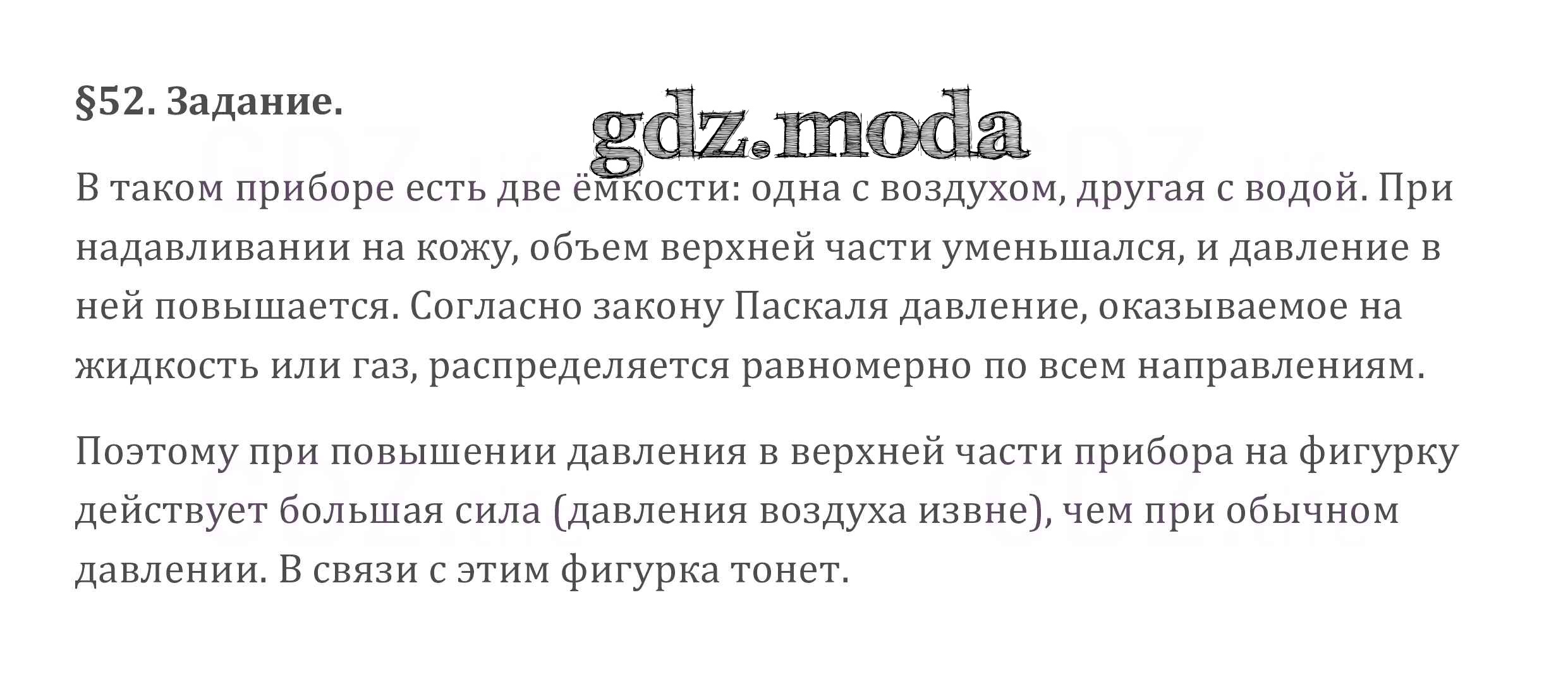 ОТВЕТ на задание № §52 Учебник по Физике 7 класс Перышкин Вертикаль