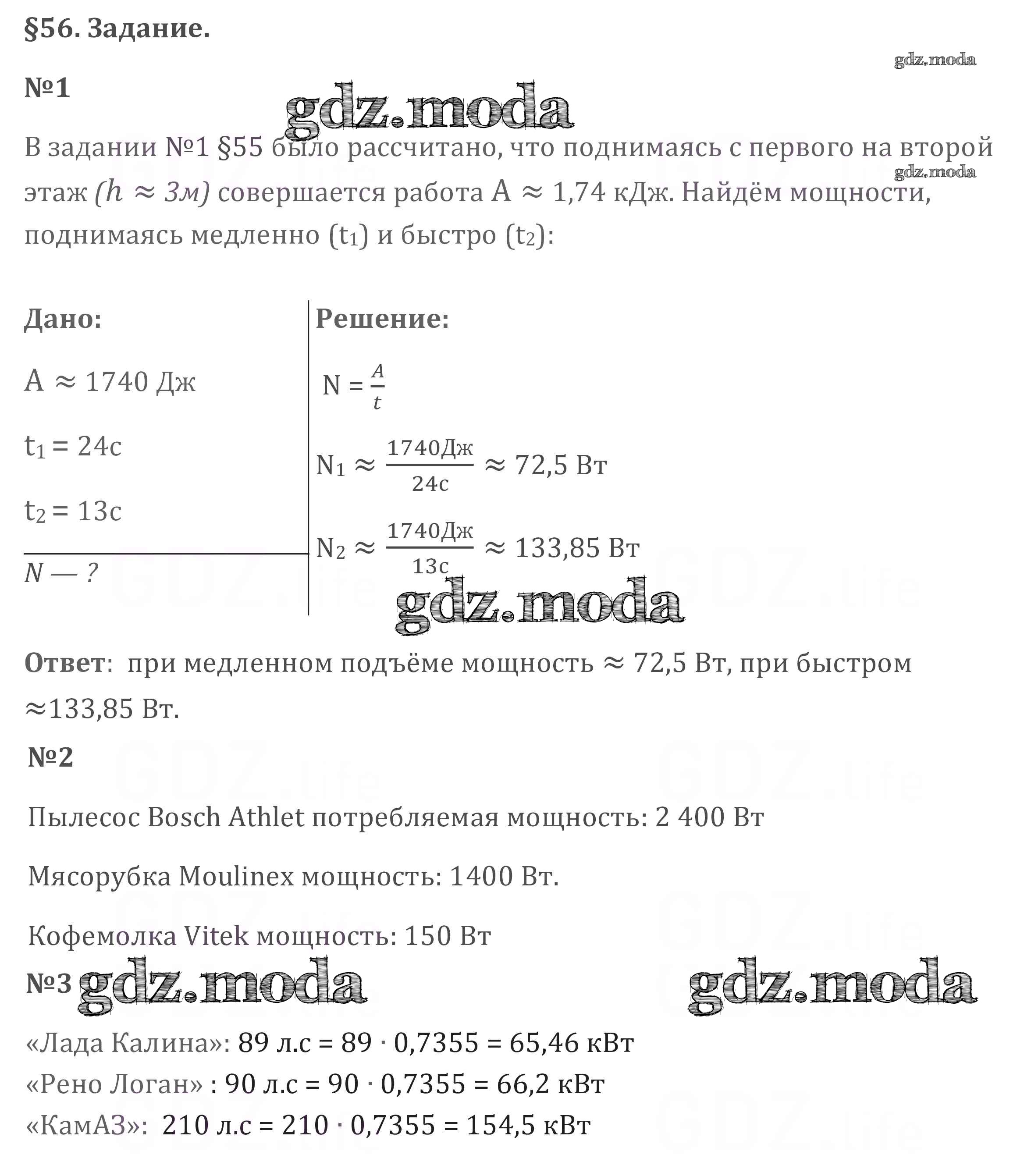 ОТВЕТ на задание № §56 Учебник по Физике 7 класс Перышкин Вертикаль