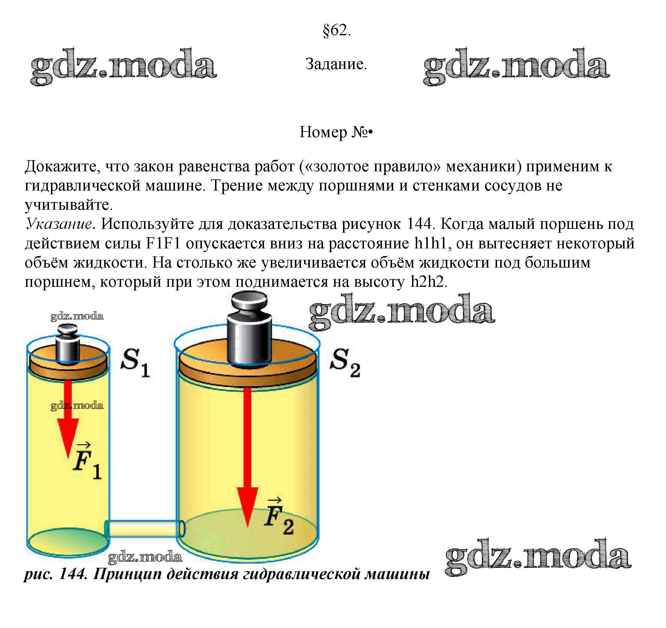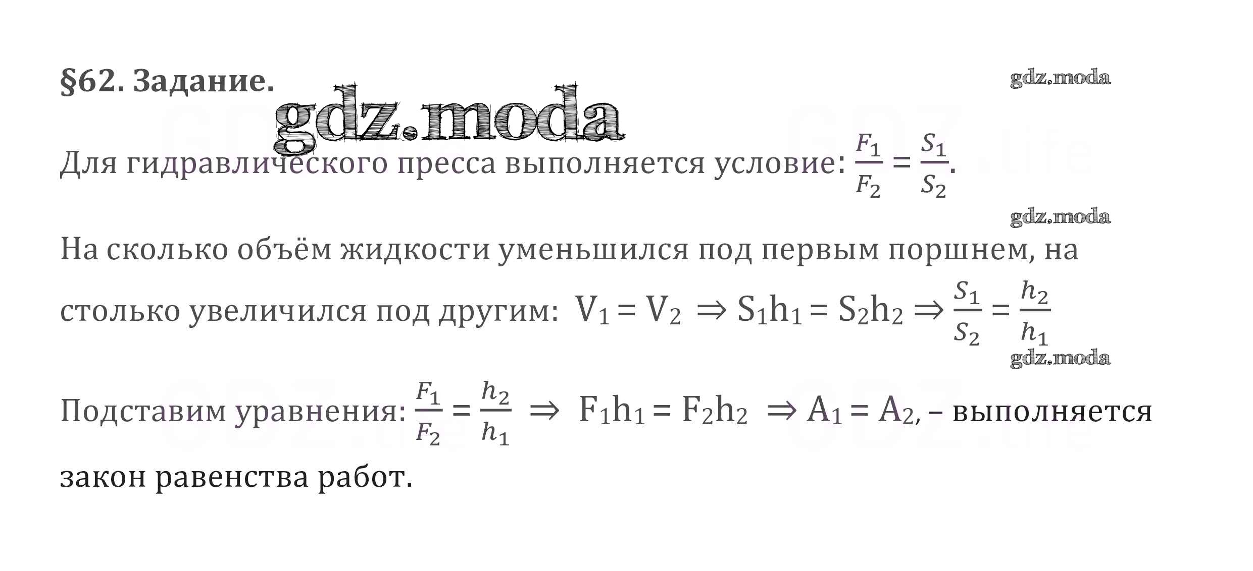 ОТВЕТ на задание № §62 Учебник по Физике 7 класс Перышкин Вертикаль