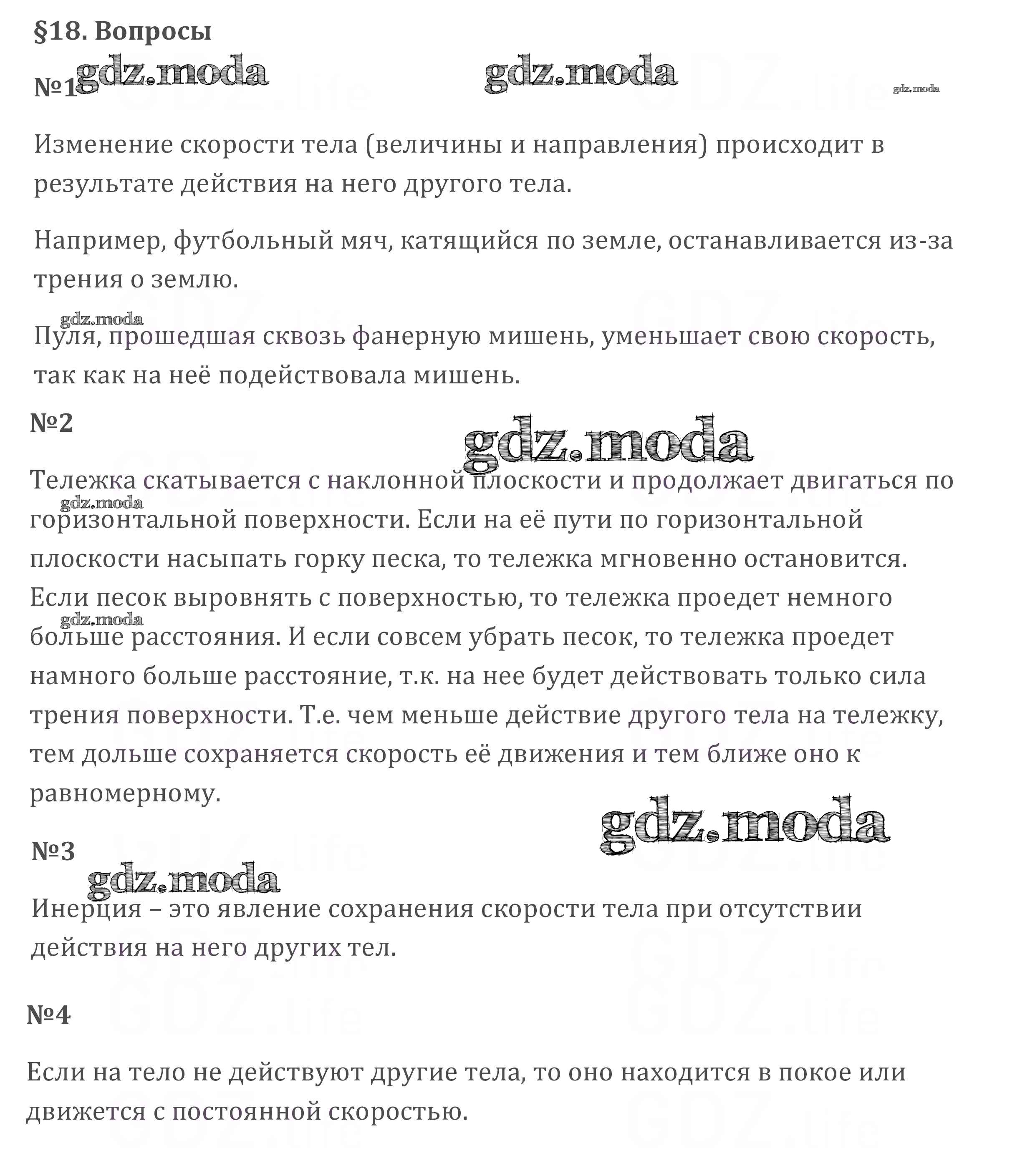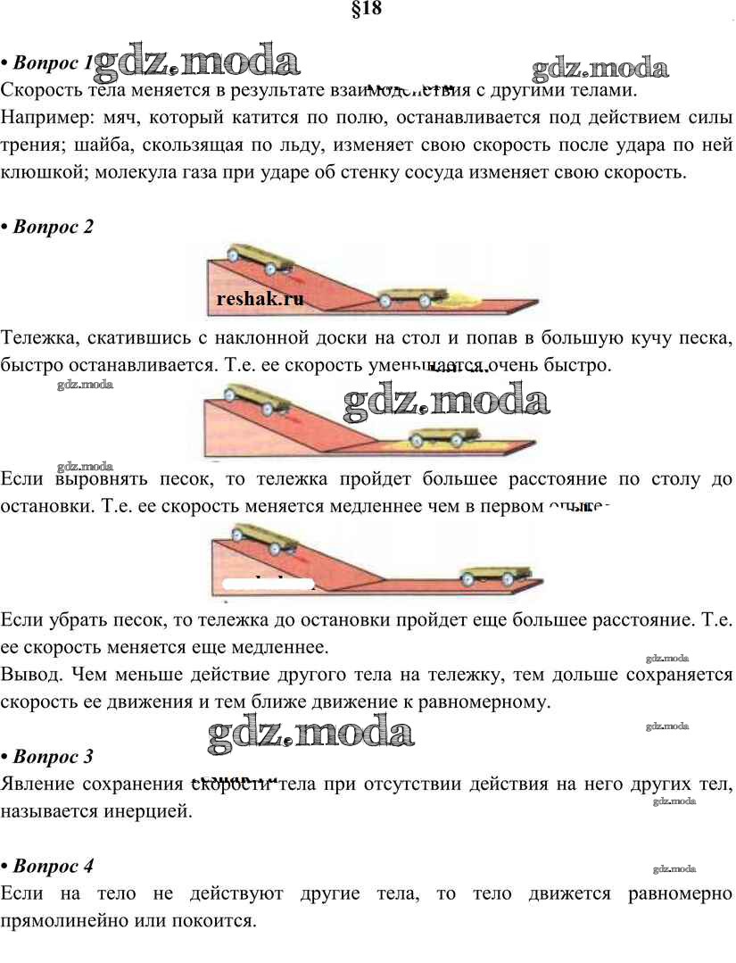 ОТВЕТ на задание № §18 Учебник по Физике 7 класс Перышкин Вертикаль