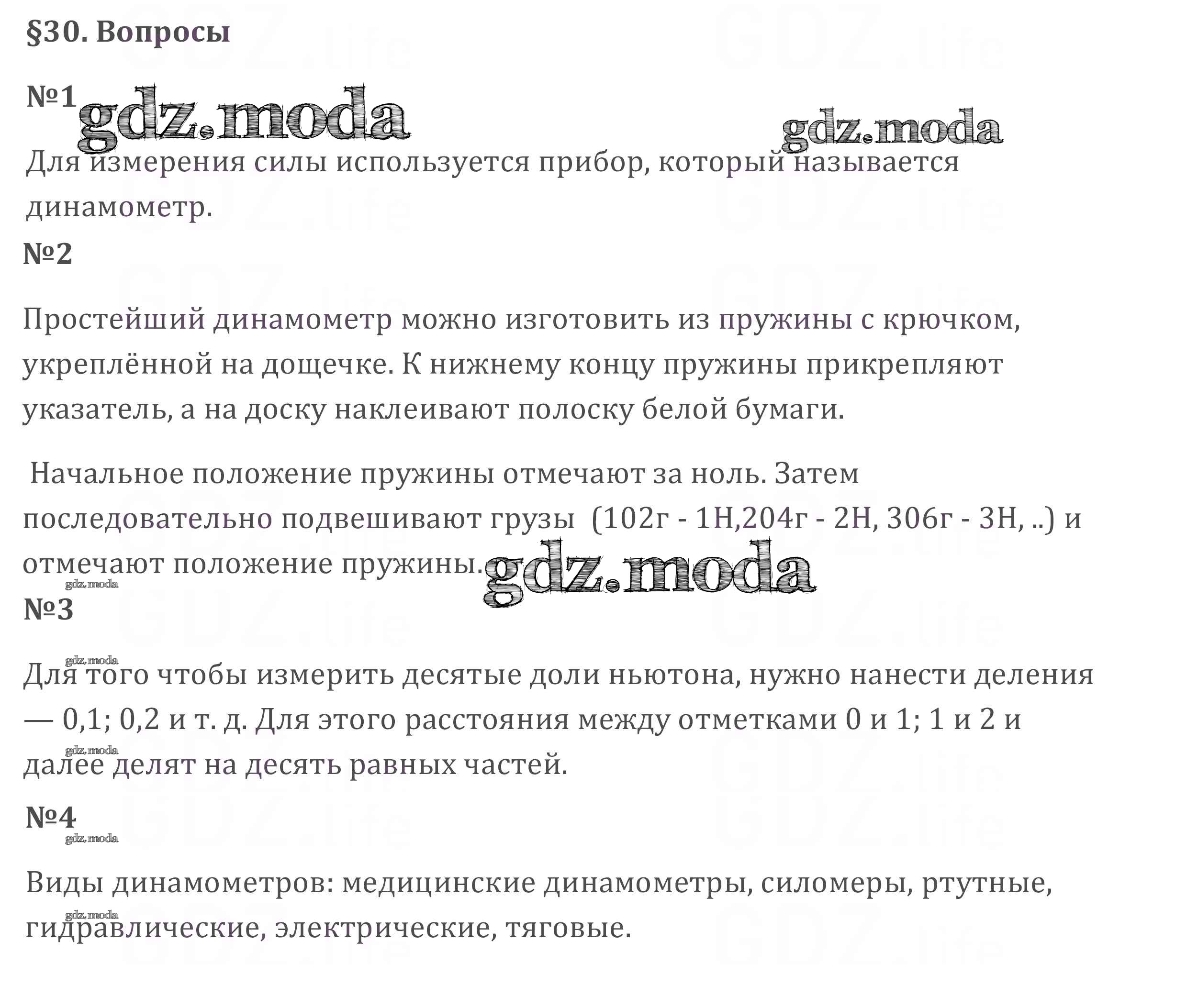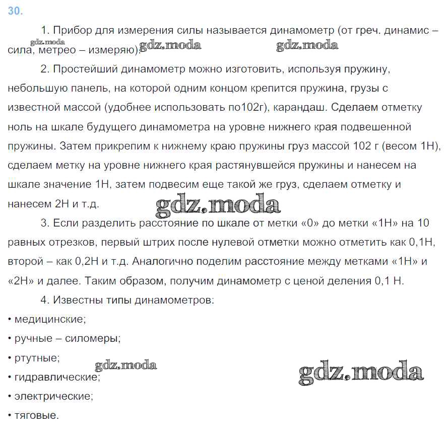 ОТВЕТ на задание № §30 Учебник по Физике 7 класс Перышкин Вертикаль