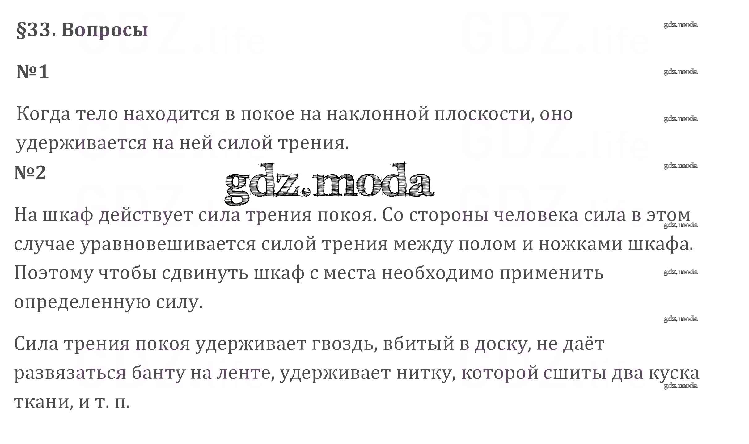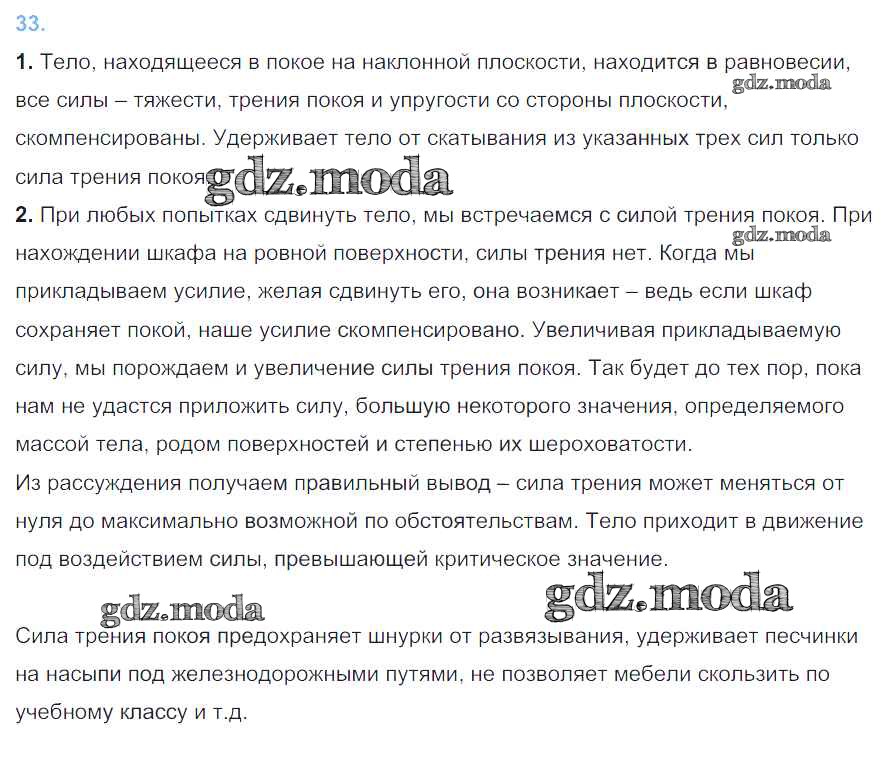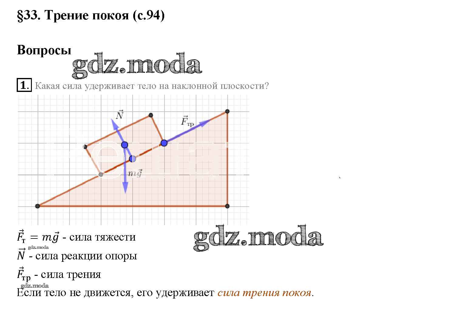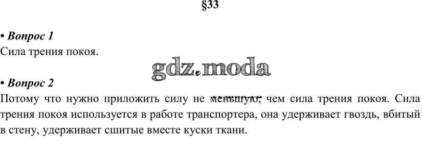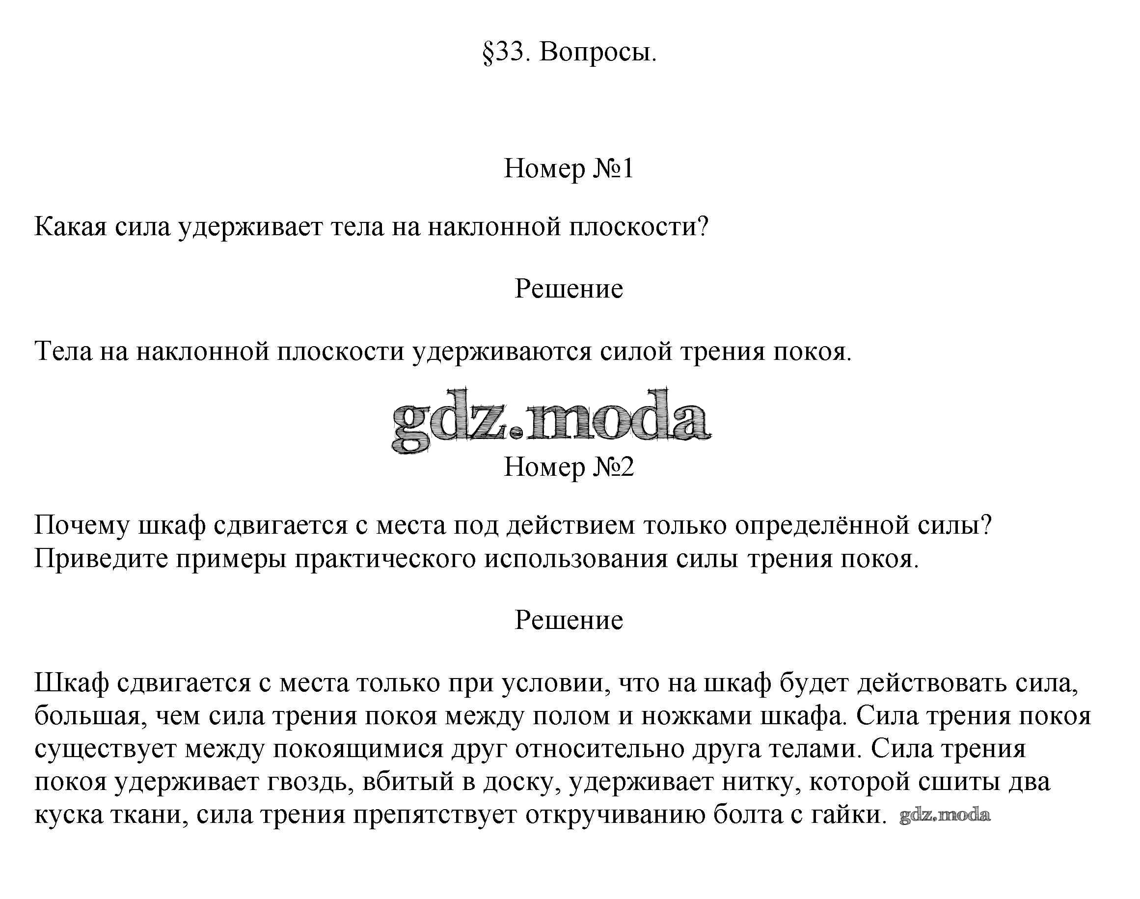 ОТВЕТ на задание № §33 Учебник по Физике 7 класс Перышкин Вертикаль